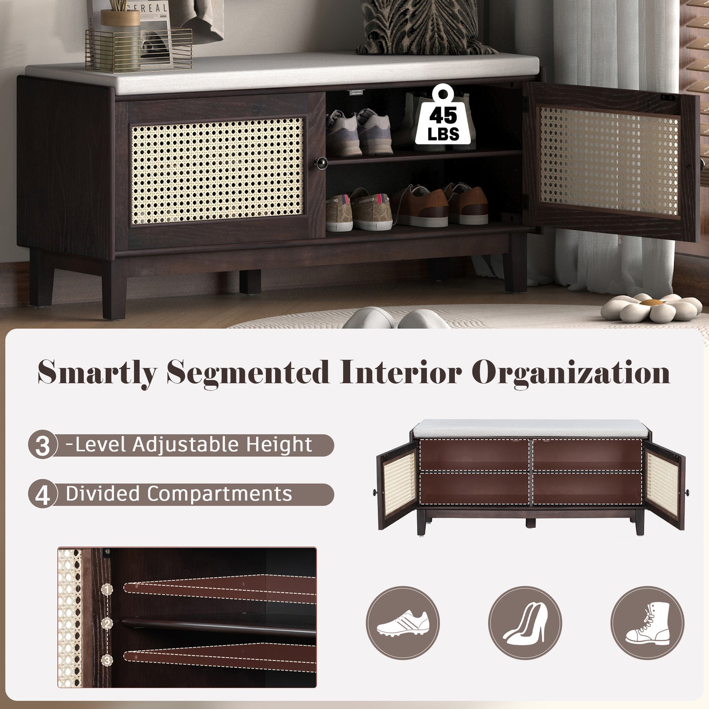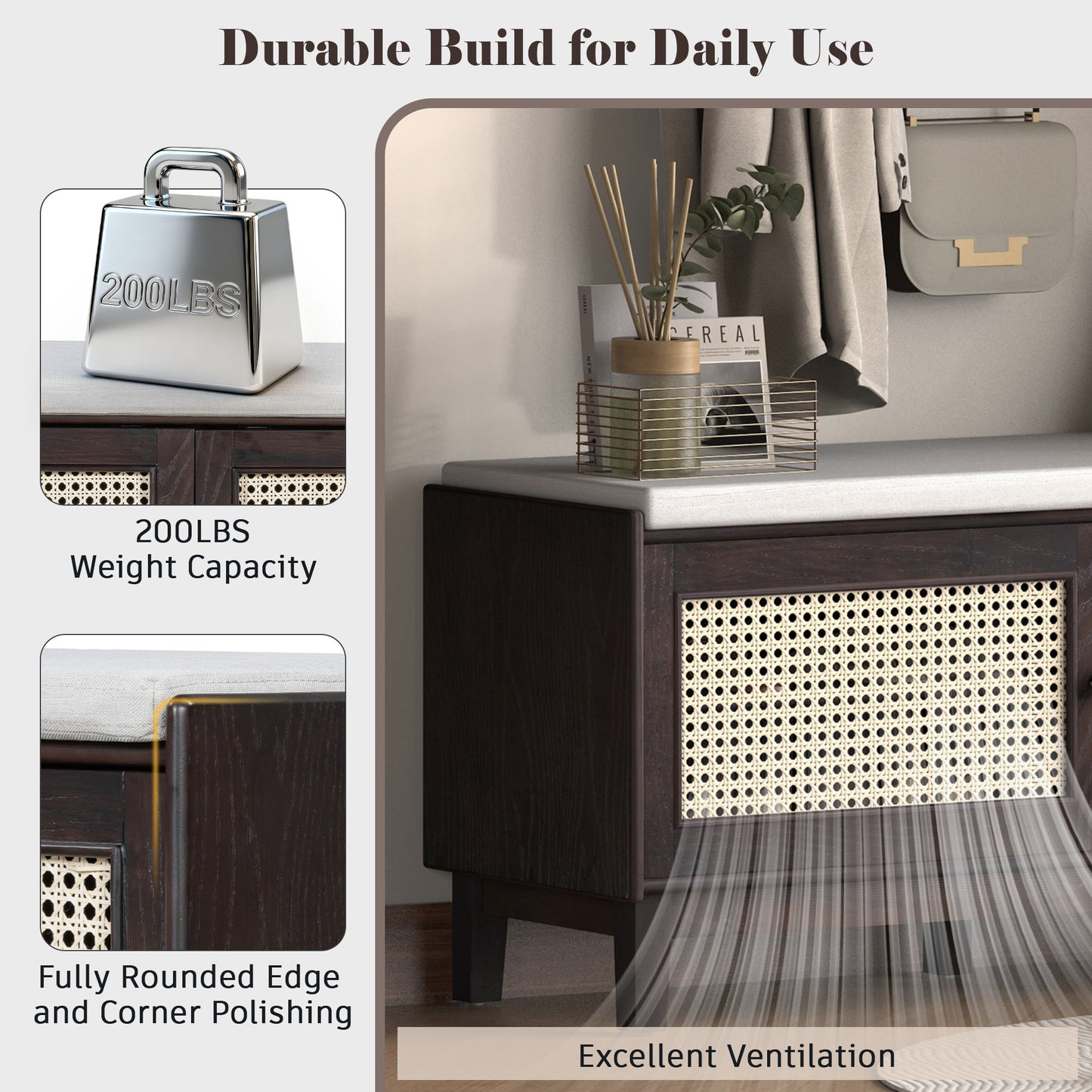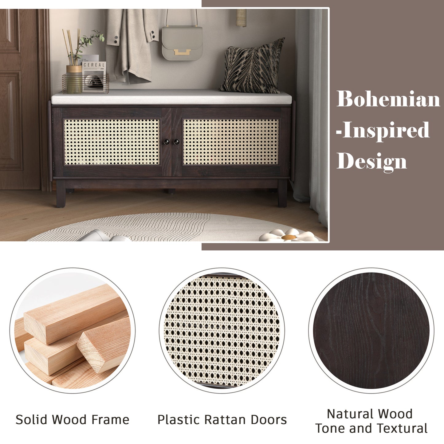 Captitu Rattan Entryway Bench | Espresso