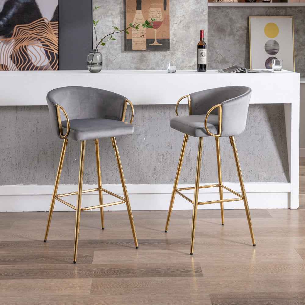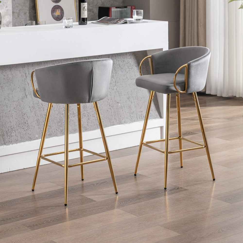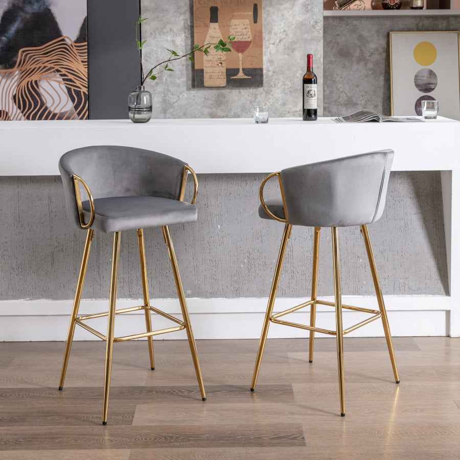 Etori Glam Bar Stools | Set of 2 | Gray Velvet