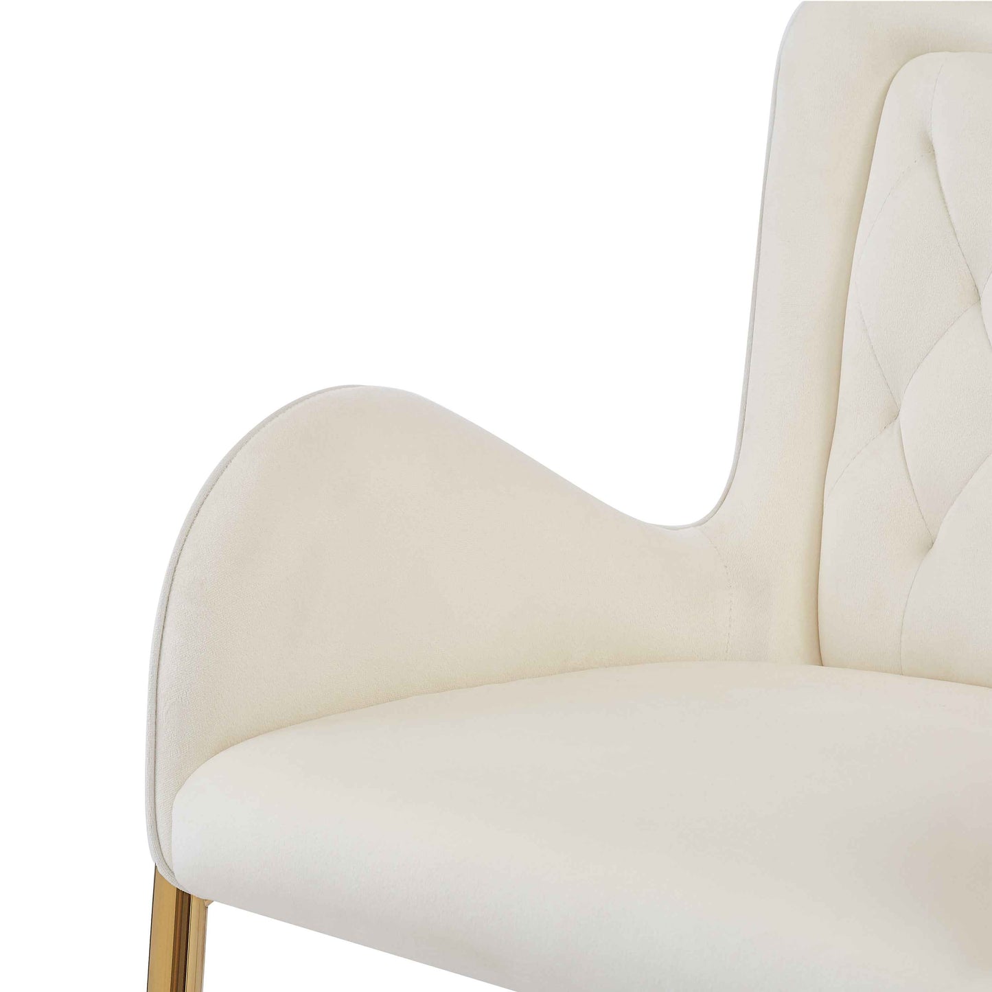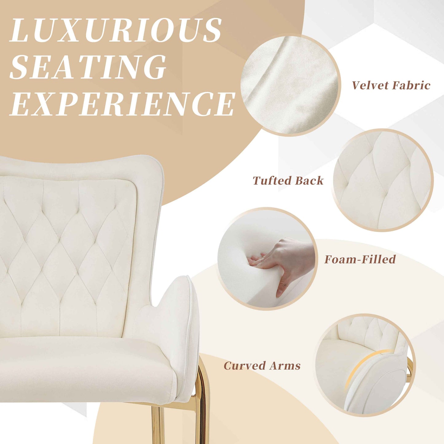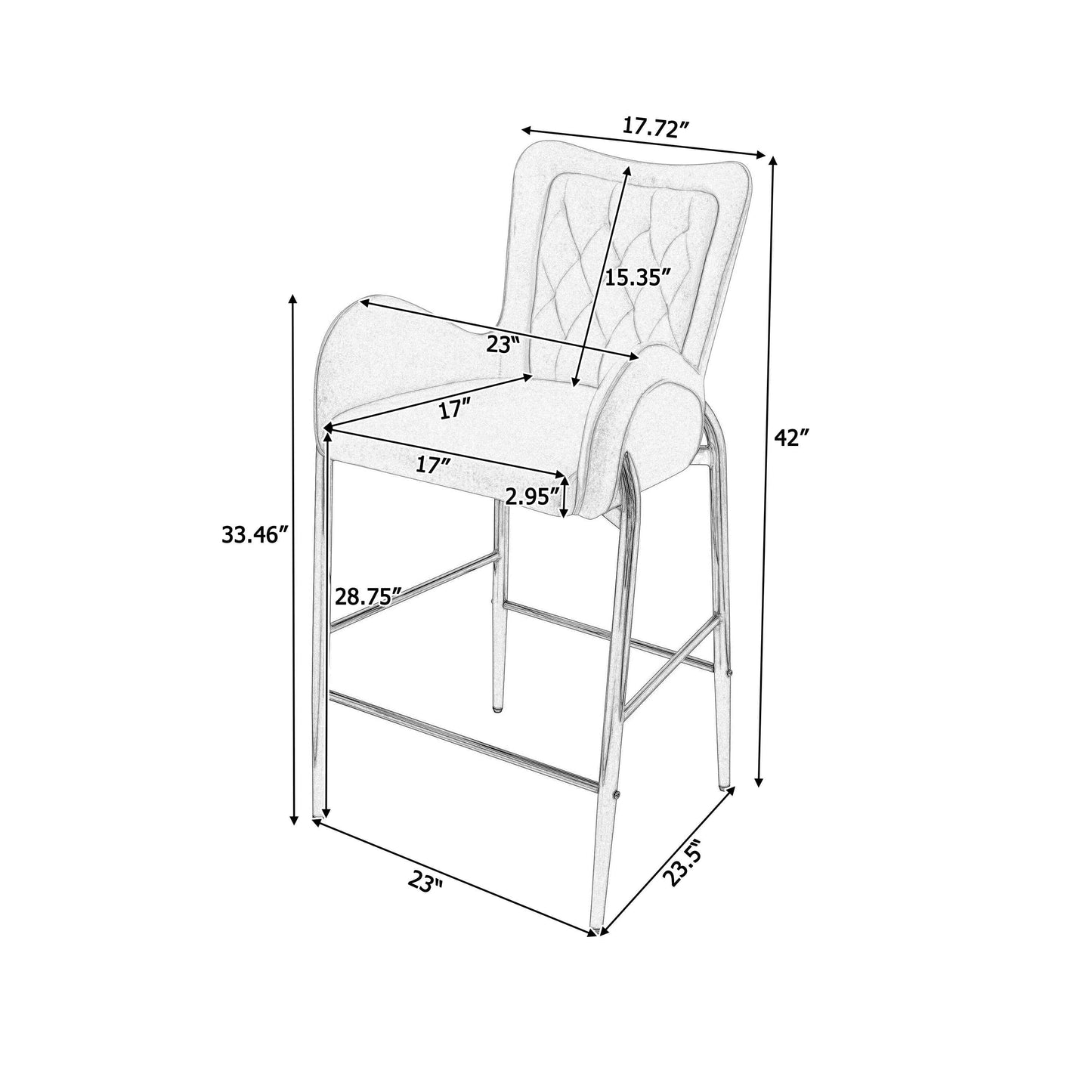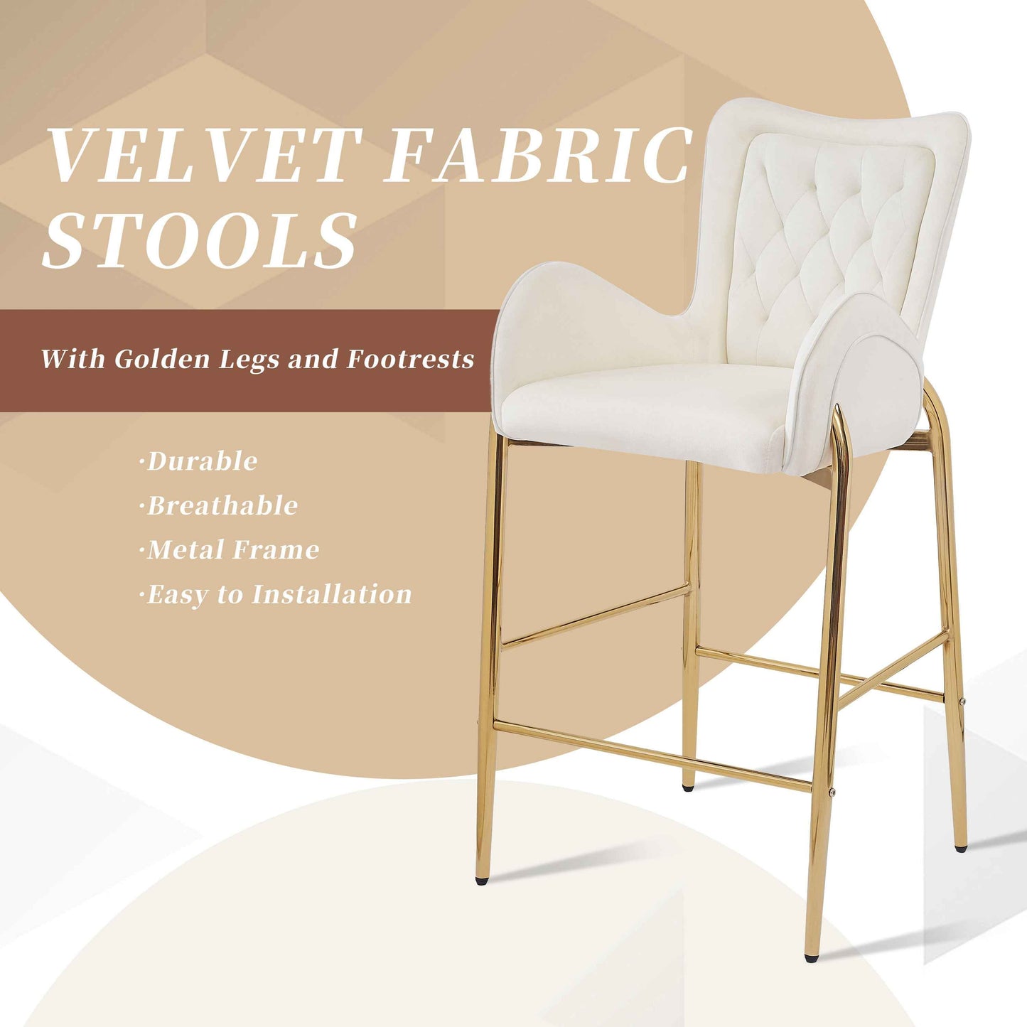 Highlights | Metal Frame // Golden Frame&Footrests // Velvet Fabric // Breathable // Foam-Filled // 28.75inch Counter Height // Set of 2 // Plastic Glides Foot Pad // Curved Arms // Tufted Back // For Kitchen &Dining // 265lbs Weight Capcaity // Easy to Installation (10min/pc/person) // 2 Colors Available |