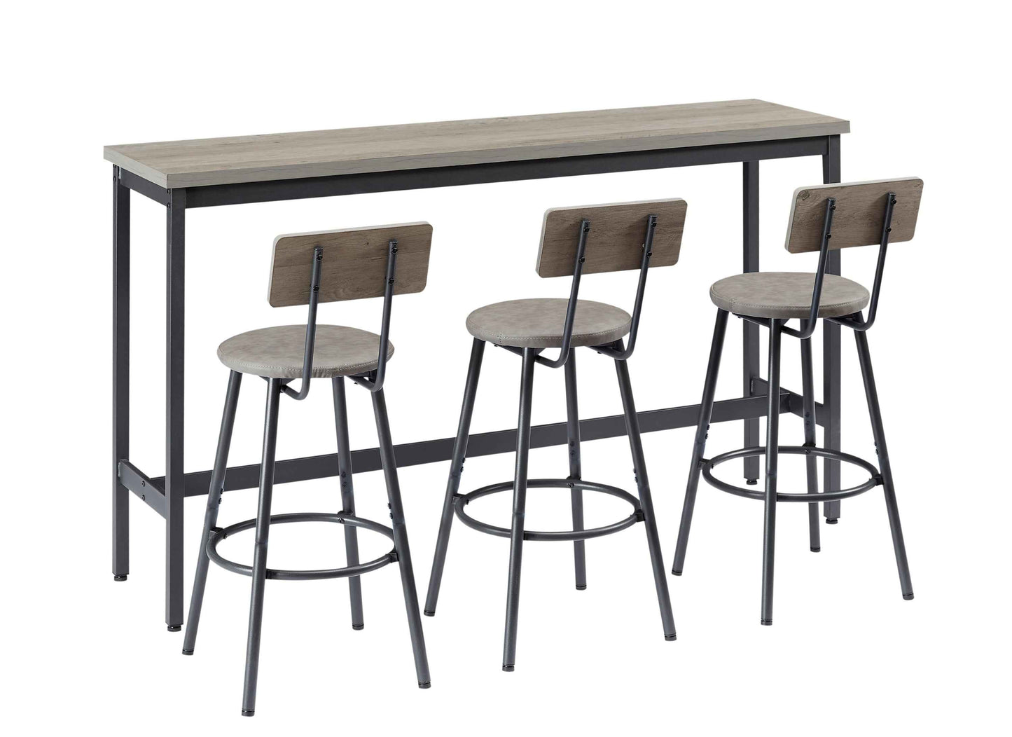 Lentus Long Bar Table Set | Rustic Gray & Black