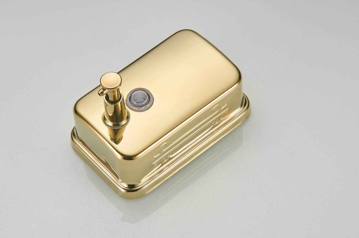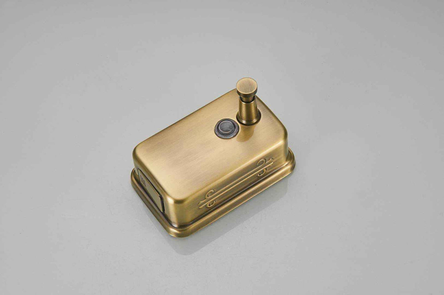 This top-of-the-line, single-head bathroom soap dispenser is crafted from highly reflective stainless steel and finished with a selection of luxurious chrome, gold, or bronze. This dispenser consists of three variants of 500ml, 800ml and 1000ml, and imbued with a weight of 378. Effortless operation is achieved by a simple hand press, allowing a touch of refinement to any restroom.