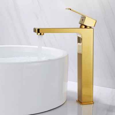Constructed from the finest all-copper material and formed through gravity die-casting, this exclusive square wash faucet, sparkles in a luxurious titanium gold or chrome hue. Boasting a ceramic spool and adjustable mounting aperture (3.1-4.0CM range), it adds a hint of tasteful luxury to any bathroom. This stunning faucet comes complete with a resilient rubber ring, three robust explosion-proof hoses and fasteners for a secure finish.