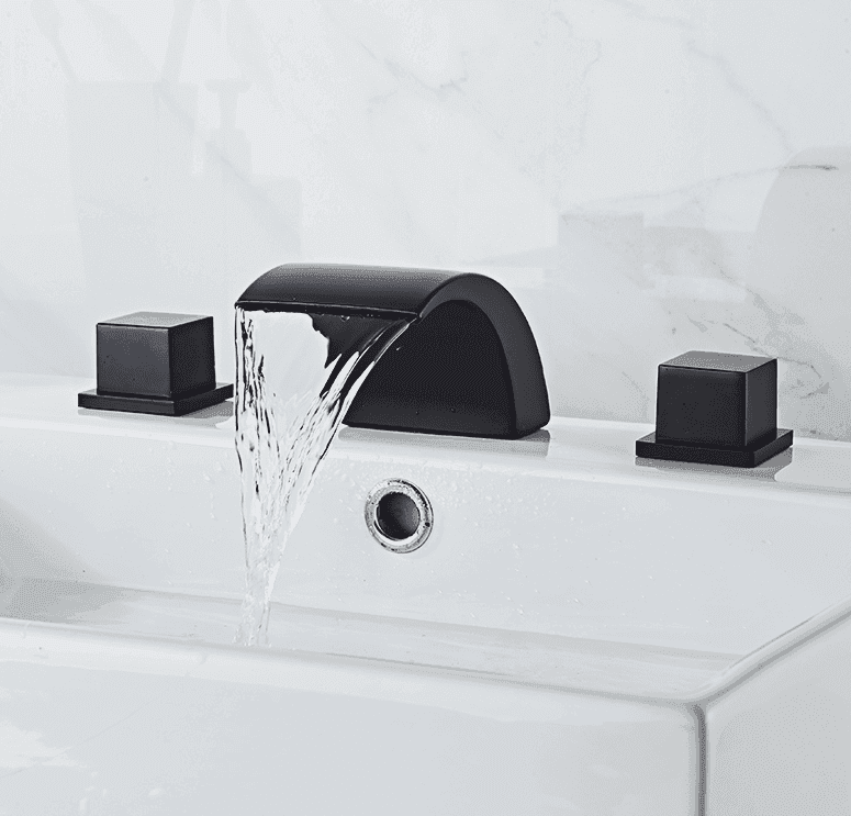 Crafted with all-copper construction, this three-hole basin faucet is bearing an all-copper spool and double, rotating handle design allowing for hot and cold water. It is designed with sophisticated blackening surface technology which ensures a tasteful look.