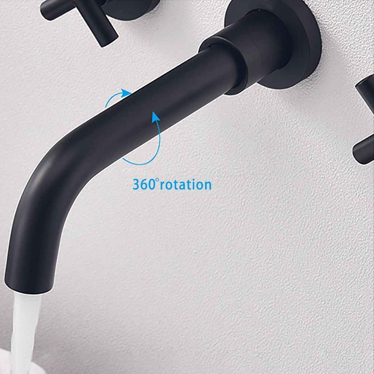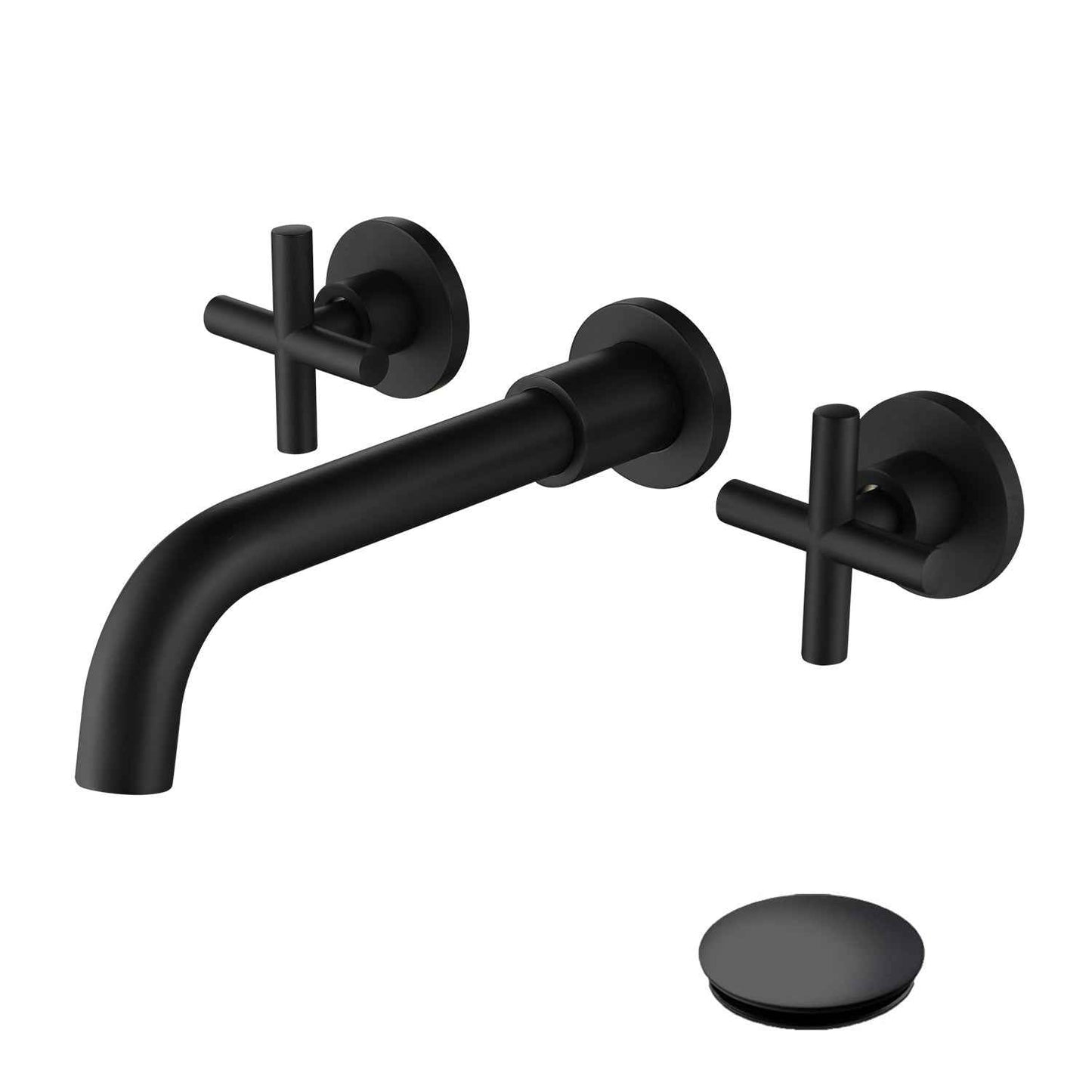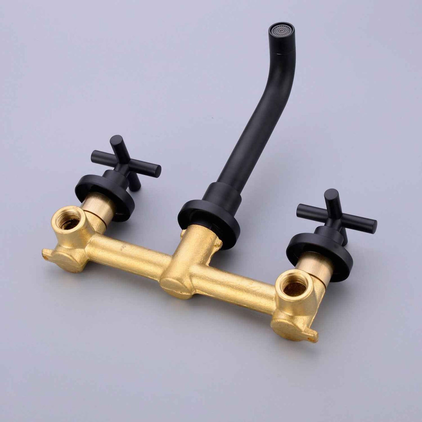 This wall-mounted bathroom tub sink faucet features two classic cross-design handles that allow easy control of water flow and temperature.