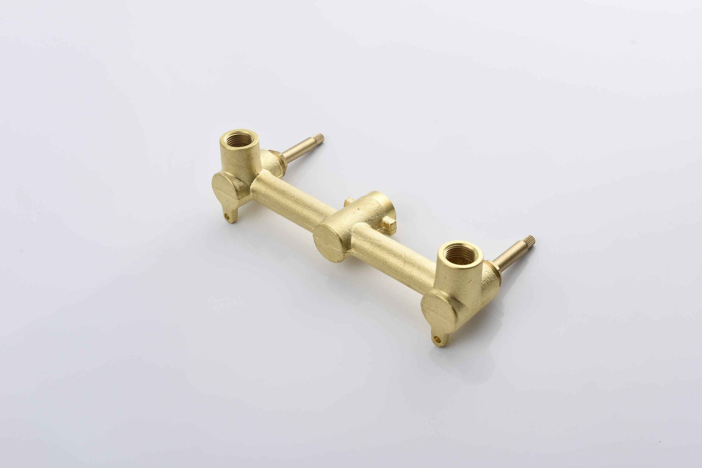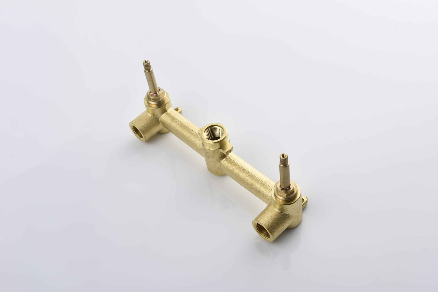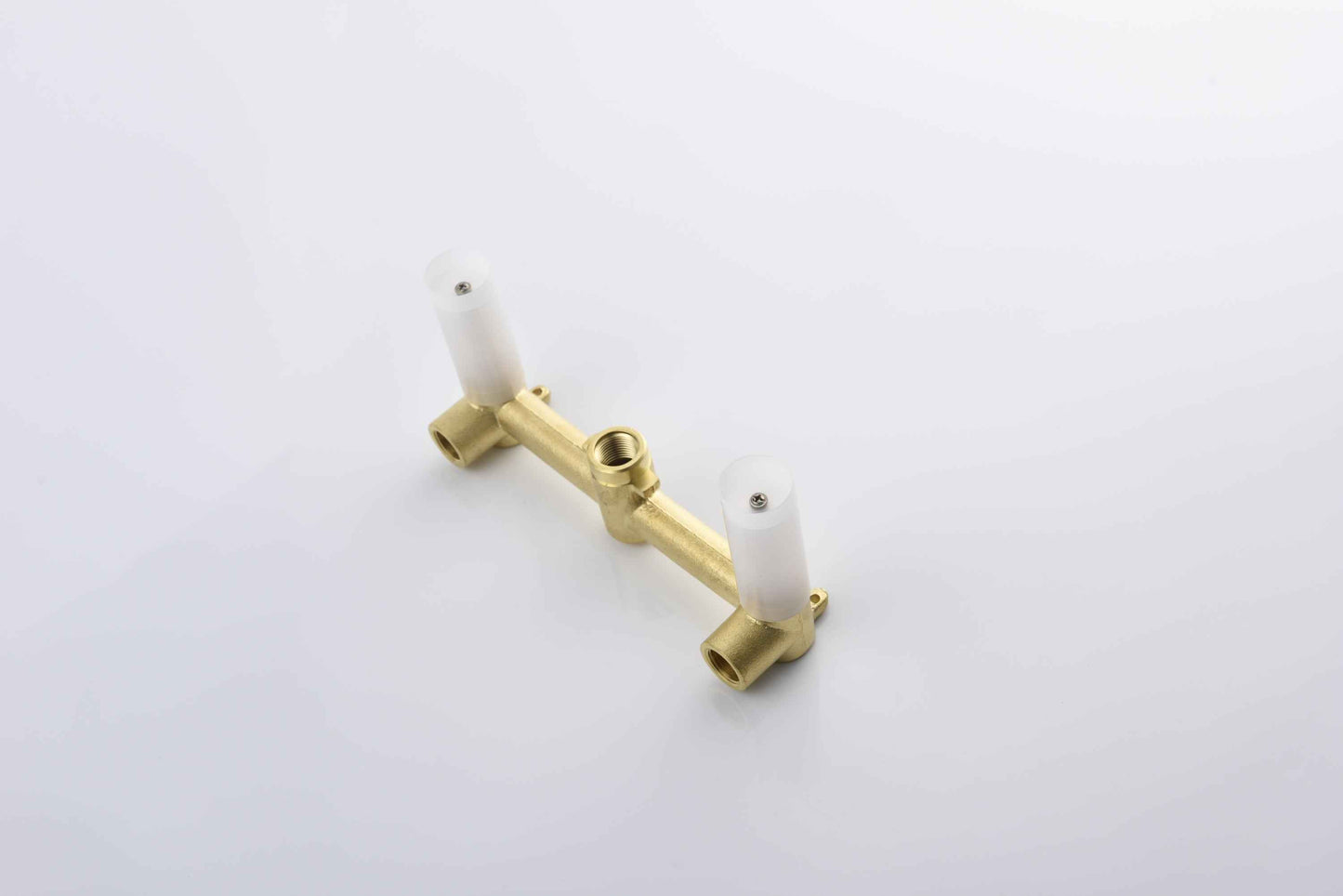 This wall-mounted bathroom tub sink faucet features two classic cross-design handles that allow easy control of water flow and temperature.