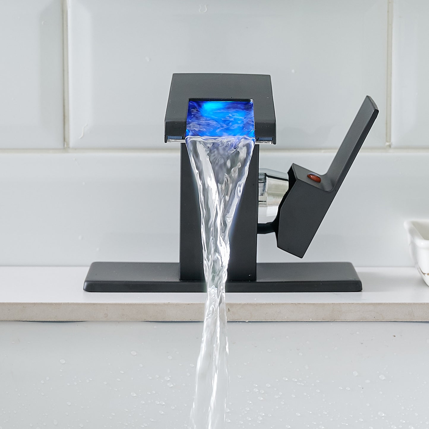 Oquid Waterfall Bathroom Faucet | 3 Colors LED Light | Black