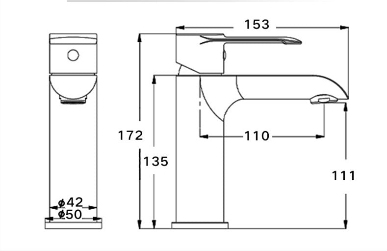 This all-brass faucet is made of copper, with chrome or matte plating finish. It has a height of 111mm - 172mm, a hole size of 35 and its single hole spool is ceramic. The package includes the faucet, angle valve, sewer pipe, water supply pipe, accessories and manual.