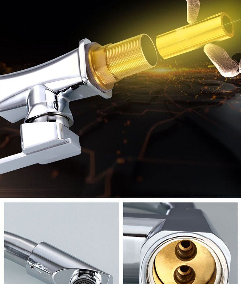 The Tourge bathroom faucet offers a sleek design with its stainless steel and copper alloy materials, allowing for versatility with rotating and three-way options. This light luxury style is perfect for those who appreciate both function and style in their bathroom.