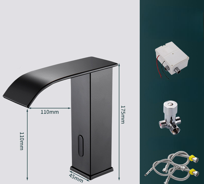 It is constructed of brass core material and is equipped with baking paint and/or electroplating surface treatments. It is designed to function between 0.05-0.6MPA of water pressure and ensures lasting use with its IP56 protection level and 6V DC power supply. Comprising of six pieces - a water faucet, a DC box, a control valve, and three hoses - this premium set enables a sophisticated and exclusive experience.