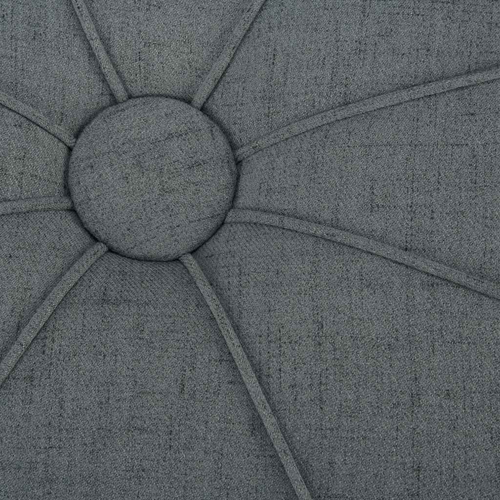 Oversized and in an unexpected shape the Ferris Ottoman will blend into many different decors. Thick welting and center button are topped off with a charcoal grey flannel fabric. No assembly required.