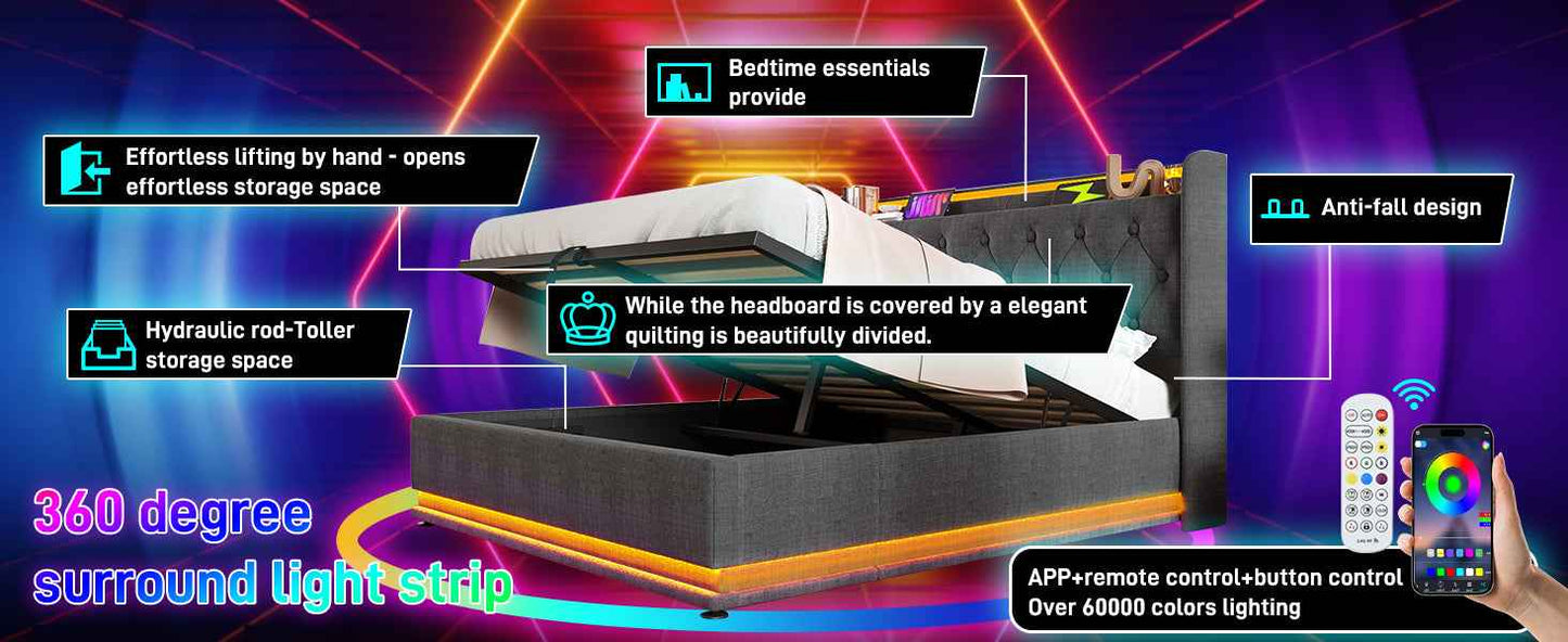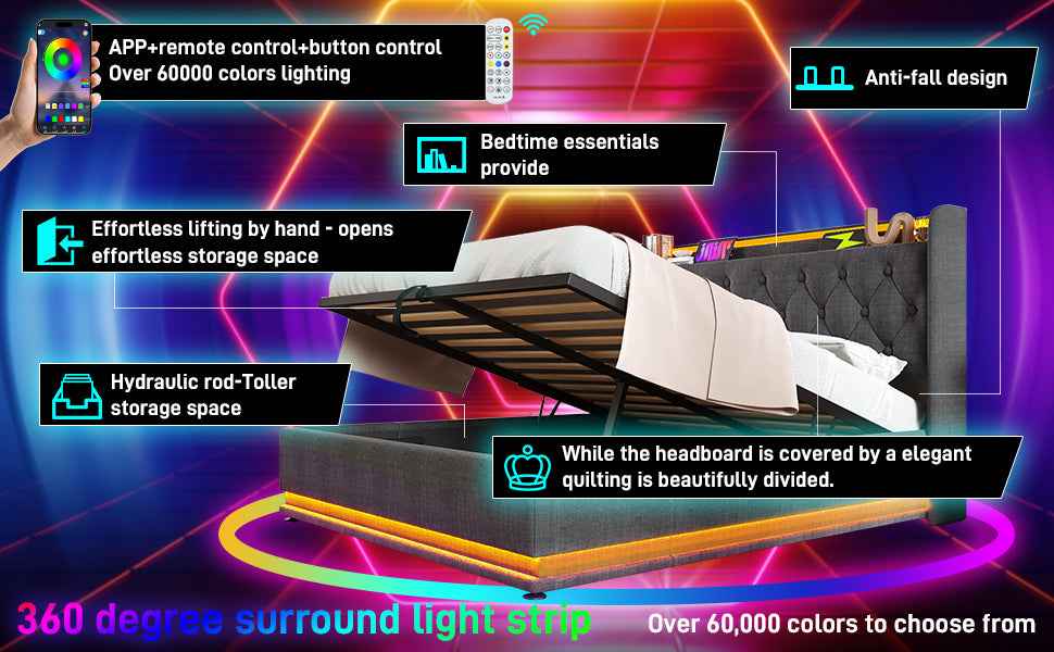 Package Content | Bed frame+USB+TypeC+App Control LED |
