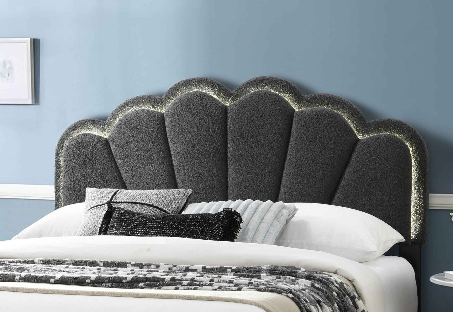 This product features a modern headboard design with built-in LED lights providing added style and functionality.