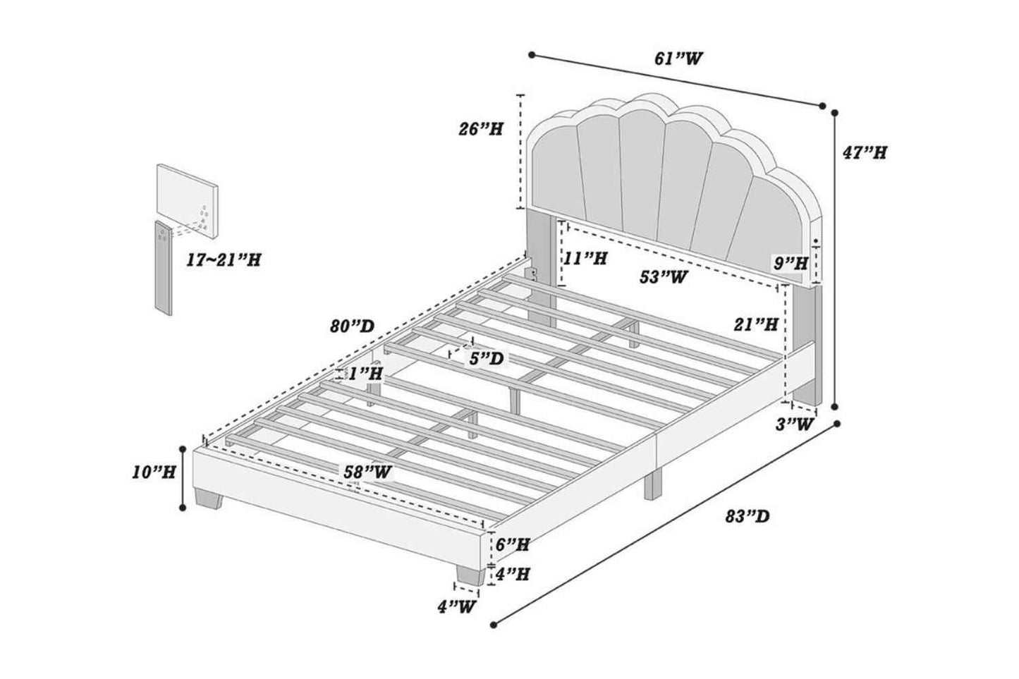 Queen Size Bed :- HB 47' H / FB 12' H,