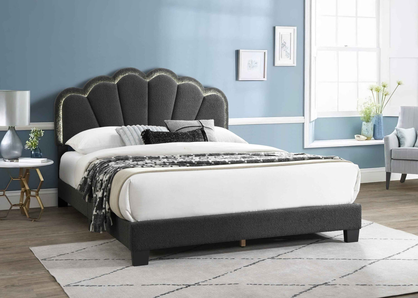 Add to the sophisticated and modern interior style of your home with a fully upholstered bed design with tufting details in a rich dark shade of charcoal color.
