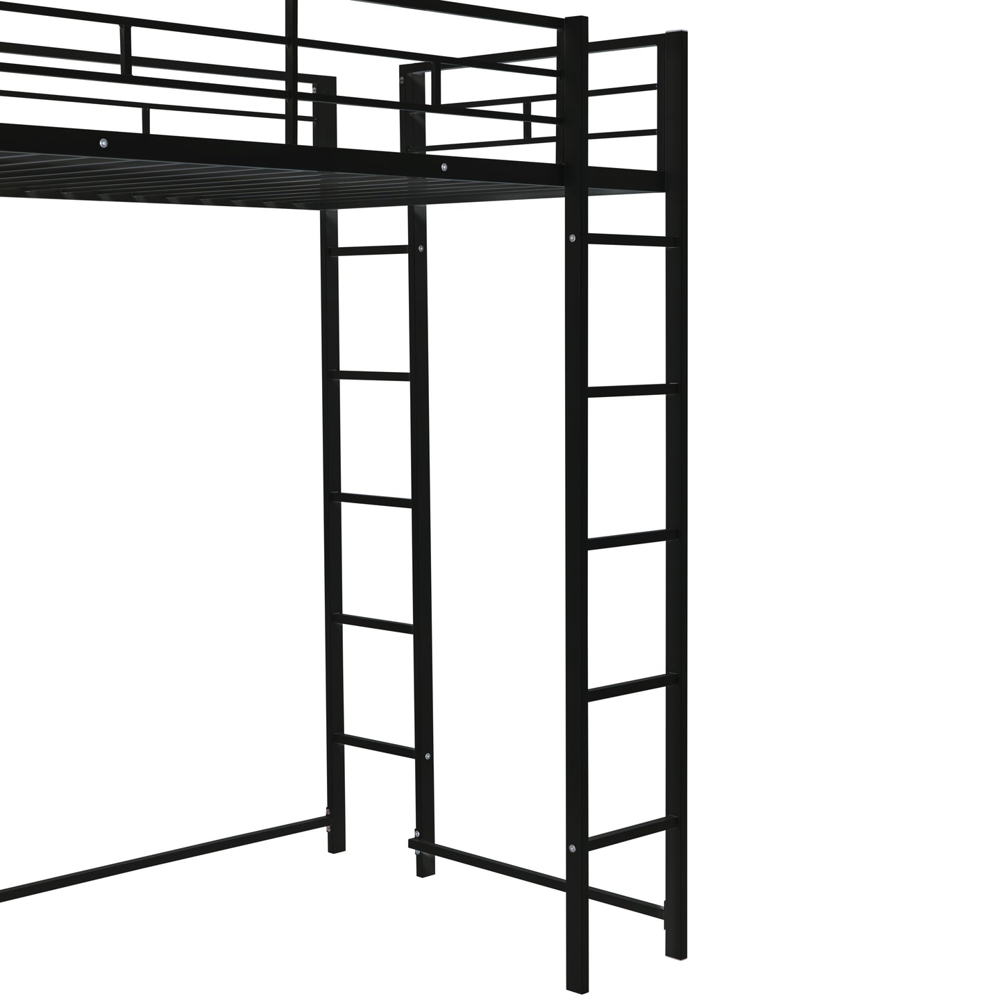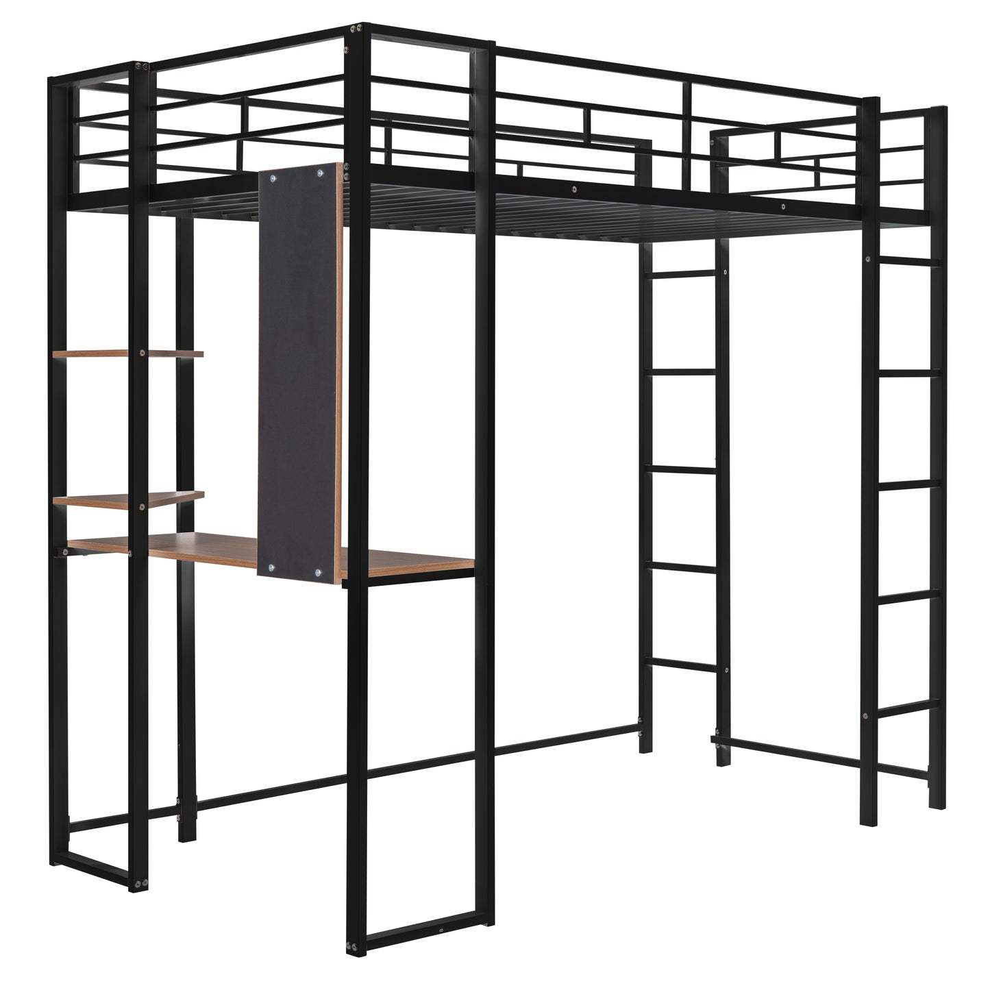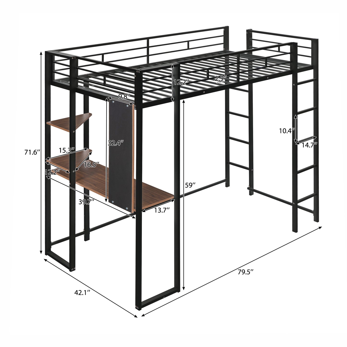 Mentili Twin Metal Loft Bed | Shelves & Desk | Black