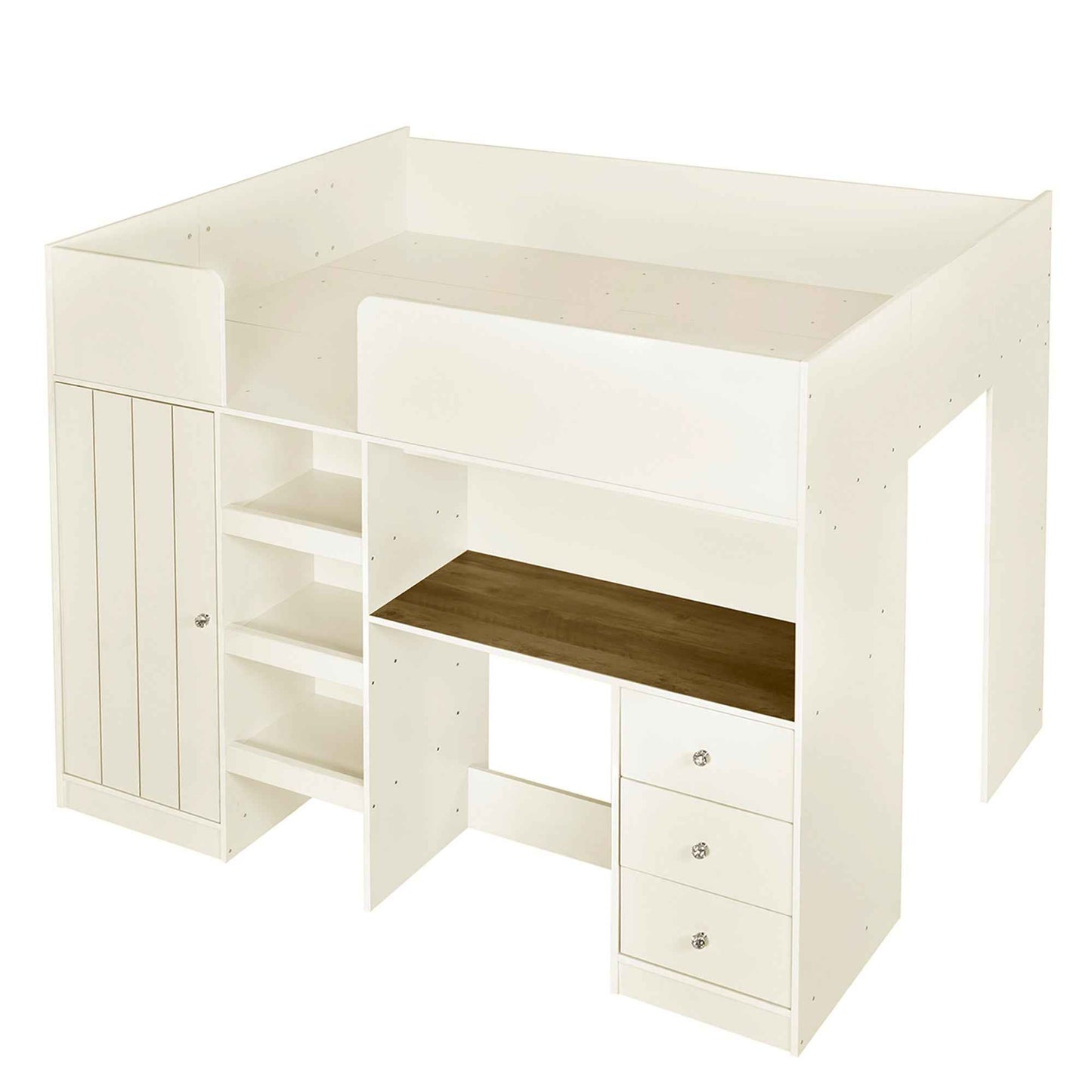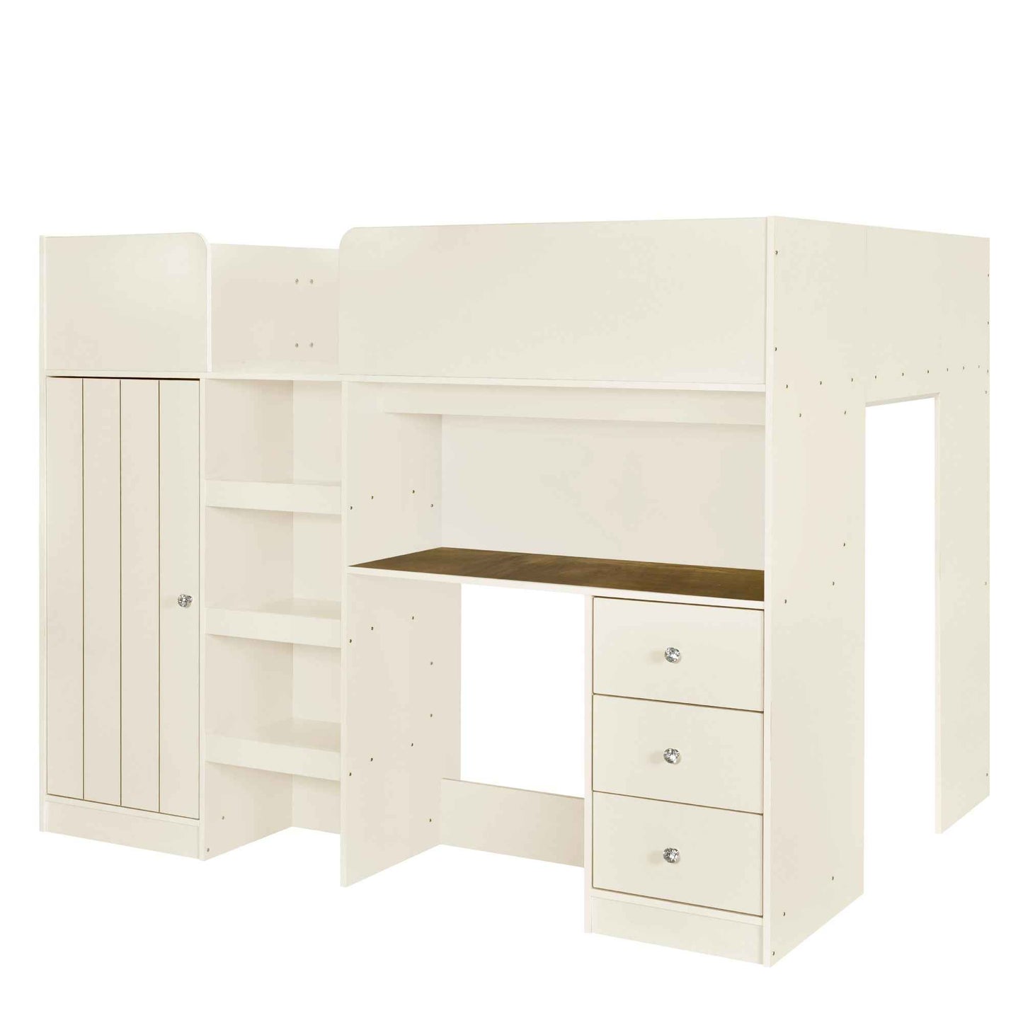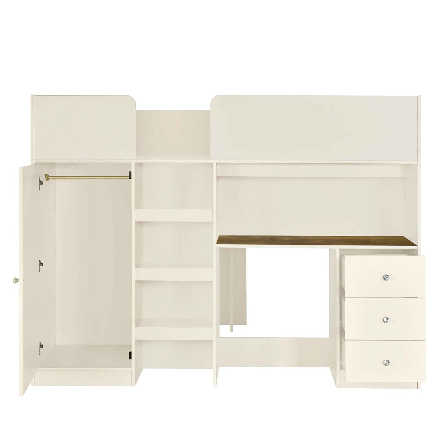 Folari Full Size Loft Bed | Built-in Wardrobe | White