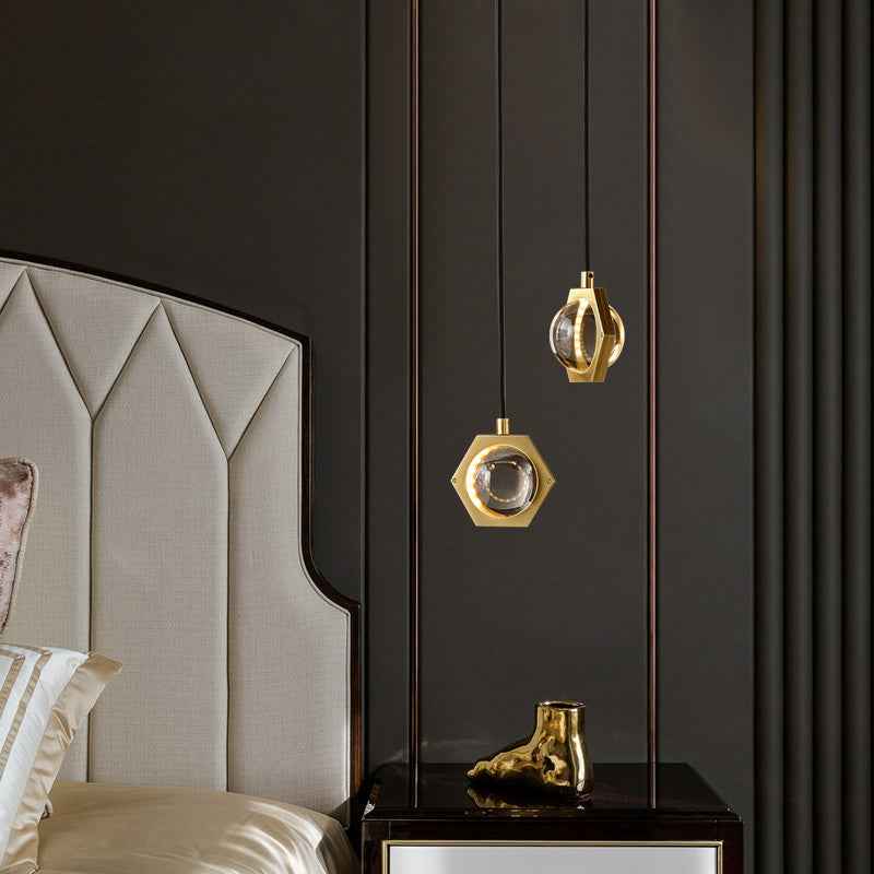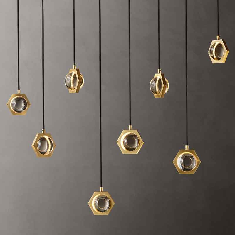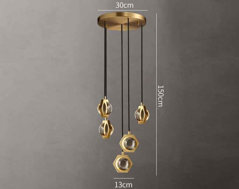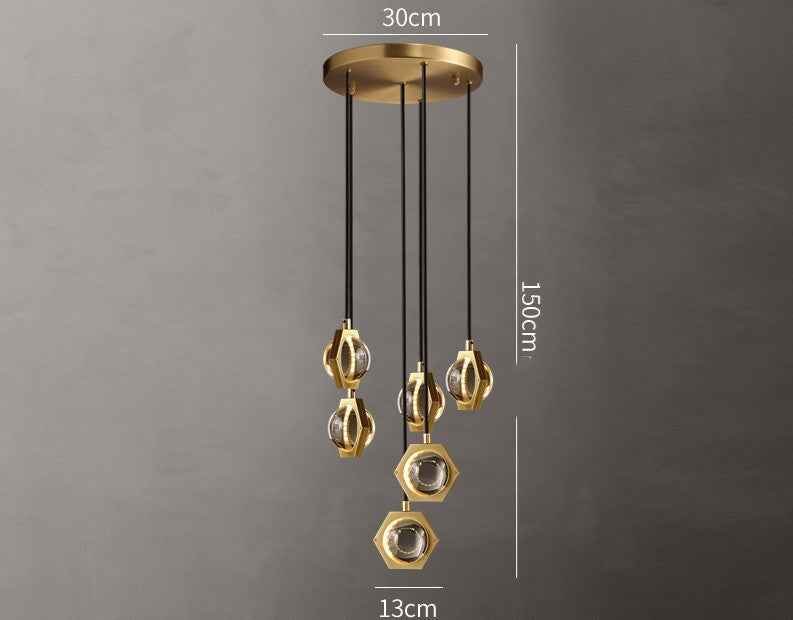 This modern minimalistic chandelier, made of copper and glass, boasts a stylish design with options available in single head, 5-head, 6-head, and 10-head sizes, each with a diameter up to 35CM and a height of 150CM which is adjustable.