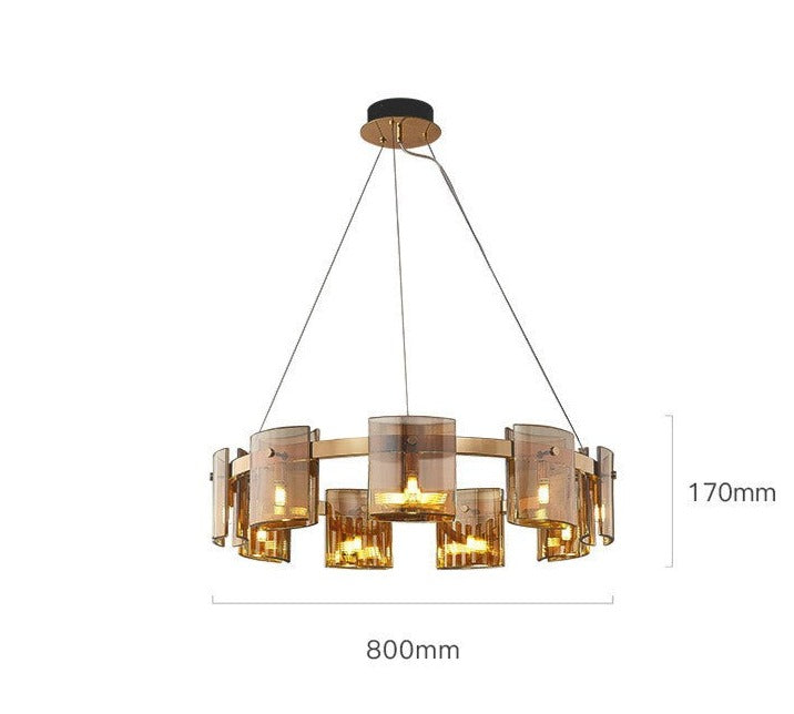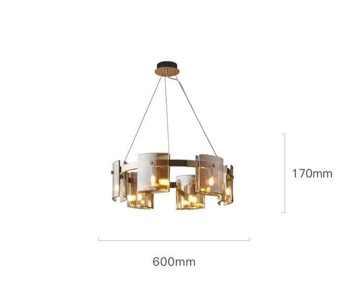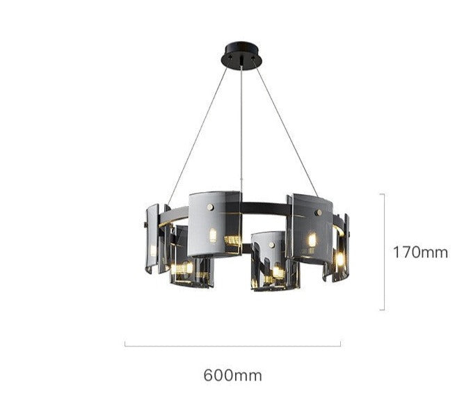 This elegant and tasteful chandelier is a luxurious, modern and simple glass fixture designed to provide bright, inviting illumination for a wide variety of settings, from living rooms and bedrooms to hotel rooms and exhibition halls. Crafted with a unique and stylish shape, it features adjustable height and is available in warm and white light and color options of smoke gray and amber with 6 or 9 light sources, covering an irradiation area of 10-15㎡. Dimensions are 600 x 170 (mm) or 800 x 170 (mm), voltage 220V.