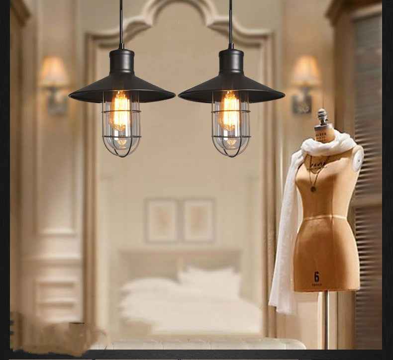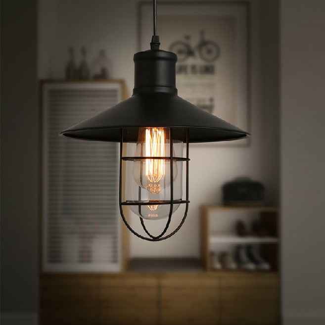 This pendant lamp, crafted from iron, is an ideal addition to a study, dining area, kitchen, or exhibition hall. Boasting a voltage of 220V and a classic industrial design, features an ST64-4W-warm light source.