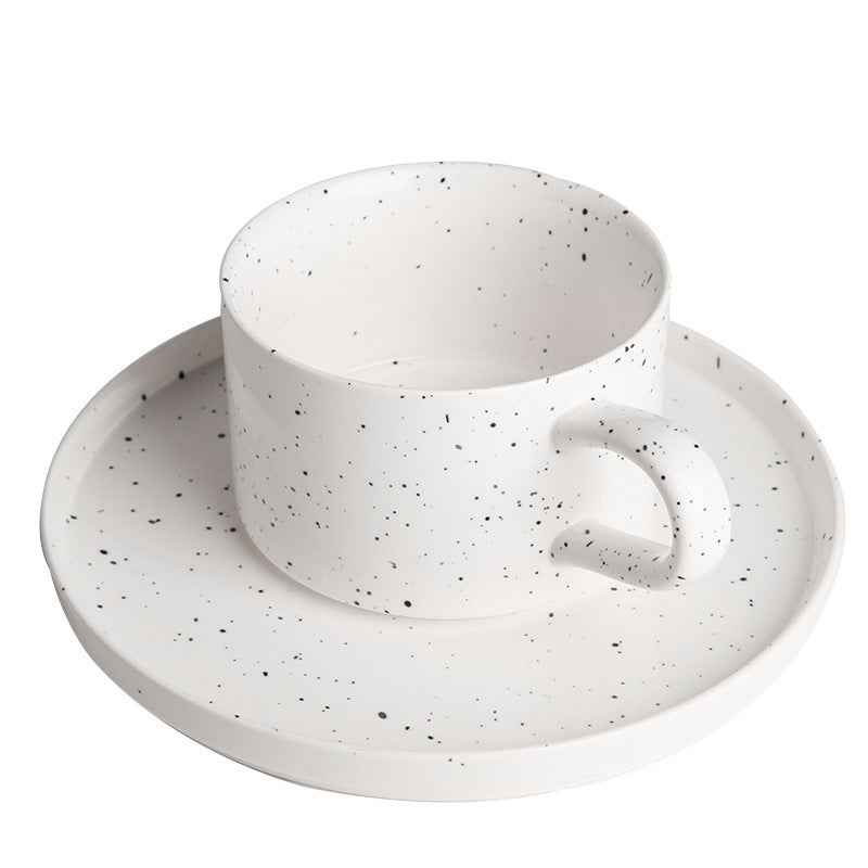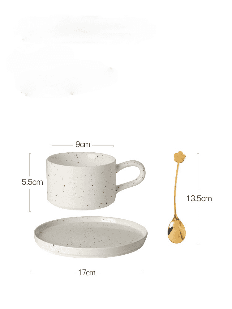 Made from durable ceramic material, this mug has a matching dish with diameter of 17cm, while the accompanying spoon stands at 13.5cm high. With a generous capacity of 200ml, it is perfect for enjoying your favorite hot beverage anytime, anywhere!