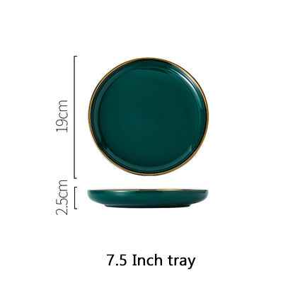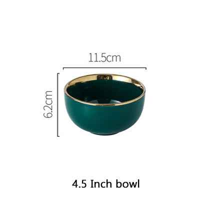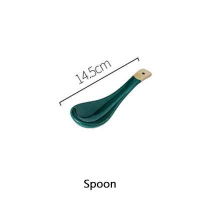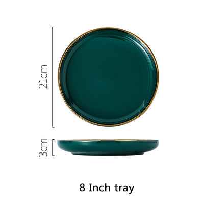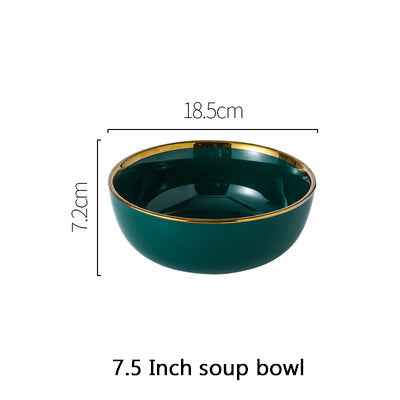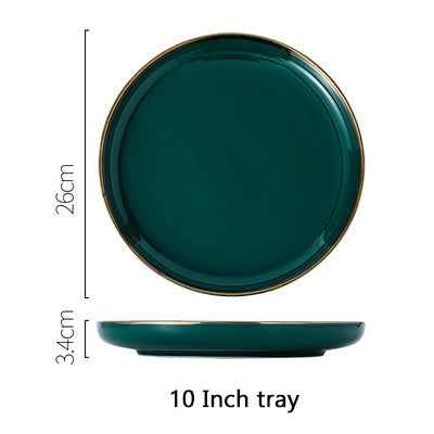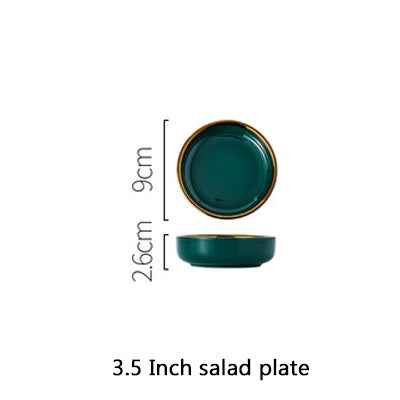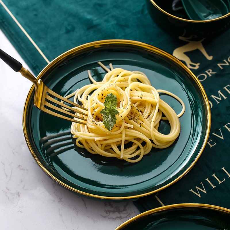 This exquisite set of tableware captures the perennial allure of precious jadeite, evoking a luxurious palace setting. Crafted from ceramic, this set boasts an elegant malachite green color and is handmade to 800℃ high-temperature baking standards. It includes a bowl, plate, and plate, all round-shaped and perfectly suited to transform any meal into a feast. This set is also suitable for a microwave oven.