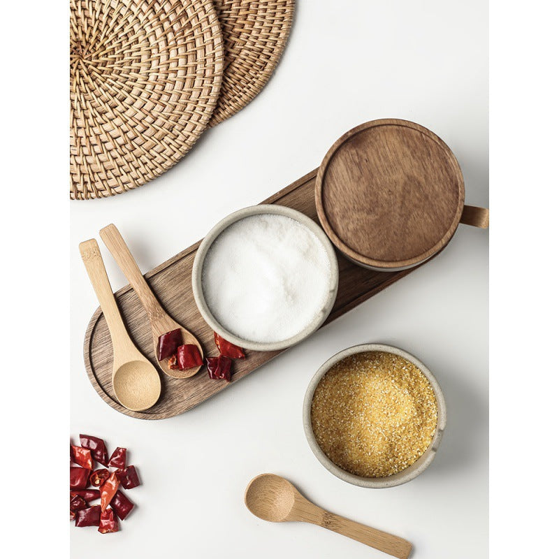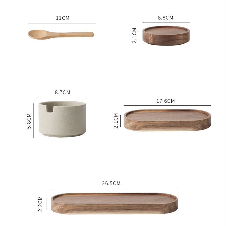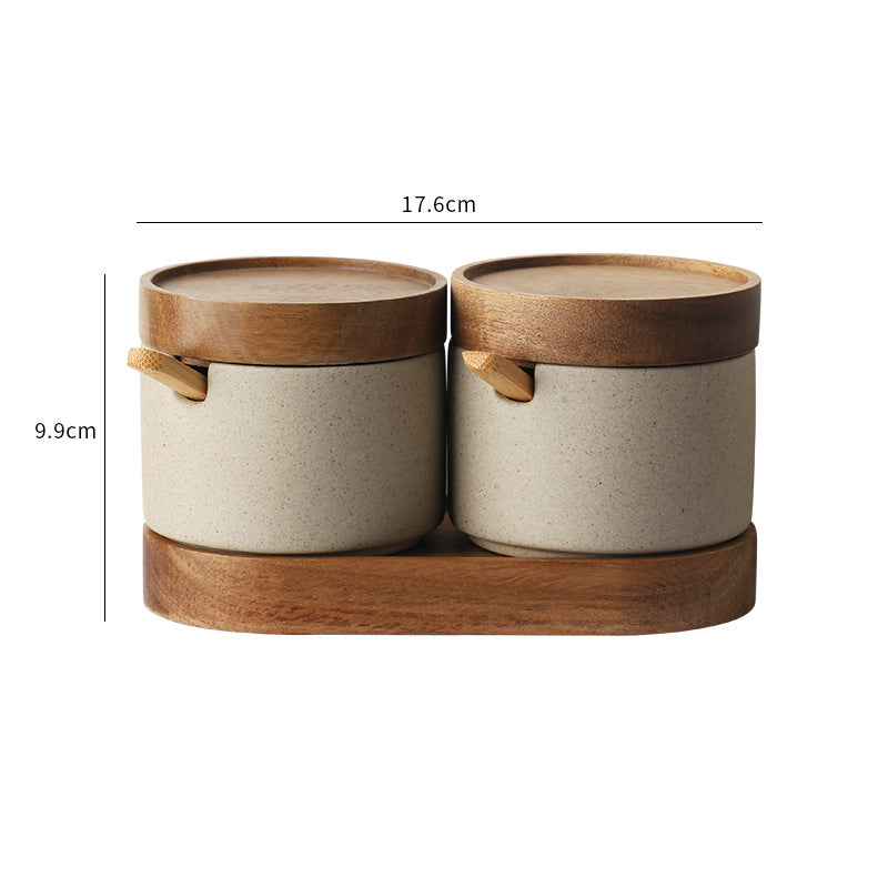 Crafted from luxurious ceramic with a sleek Japanese-inspired design, this exquisite set includes two or three jars, a charming tray, and a delicate spoon for the utmost in style and function.