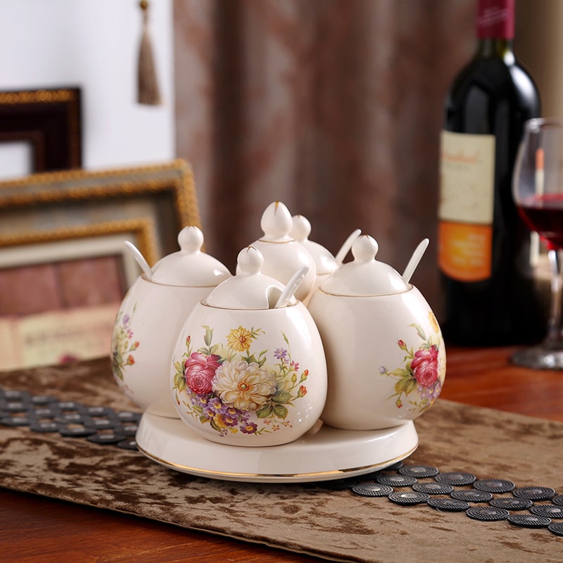 Discover more about this seasoning jar storage box with 4 pieces and a rotary design, in beautiful off-white and dark green colors. The ceramic material is both durable and stylish, making it a great addition to your kitchen. Plus, the unique detachable feature adds convenience and functionality.