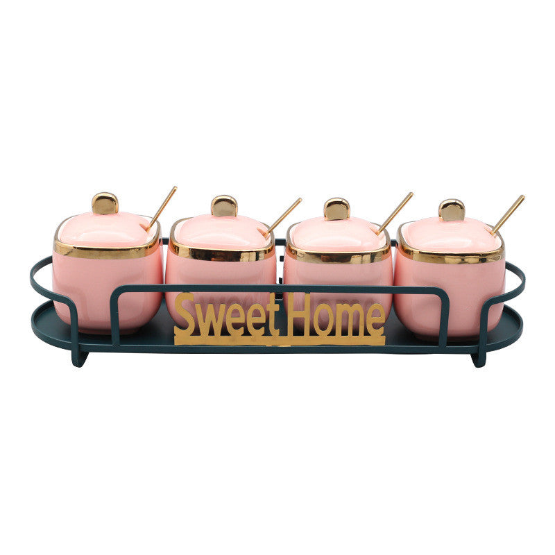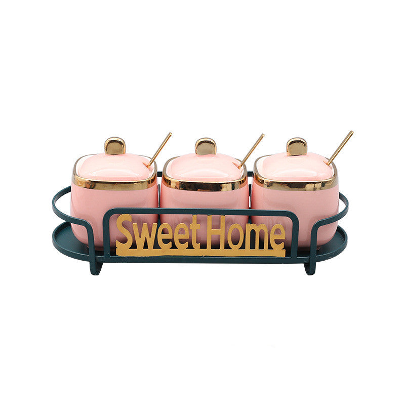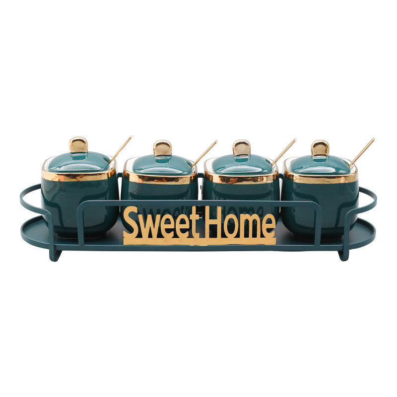 Crafted with striking artistry, this sumptuous storage rack is constructed with ceramic, encased in an iron frame and adorned with luxuriant titanium plating - a perfect place to house your solid seasonings.