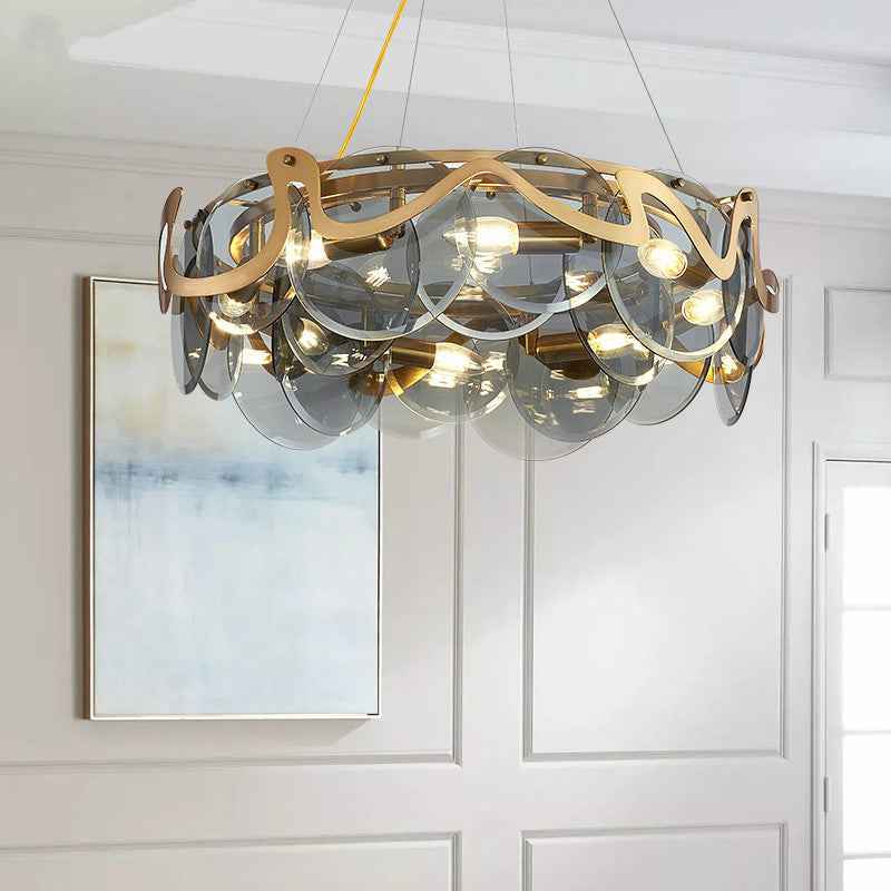 Constructed of iron and glass, this fashionable and elegant chandelier is offered in white and grey hues and three different sizes, able to illuminate your space in style.