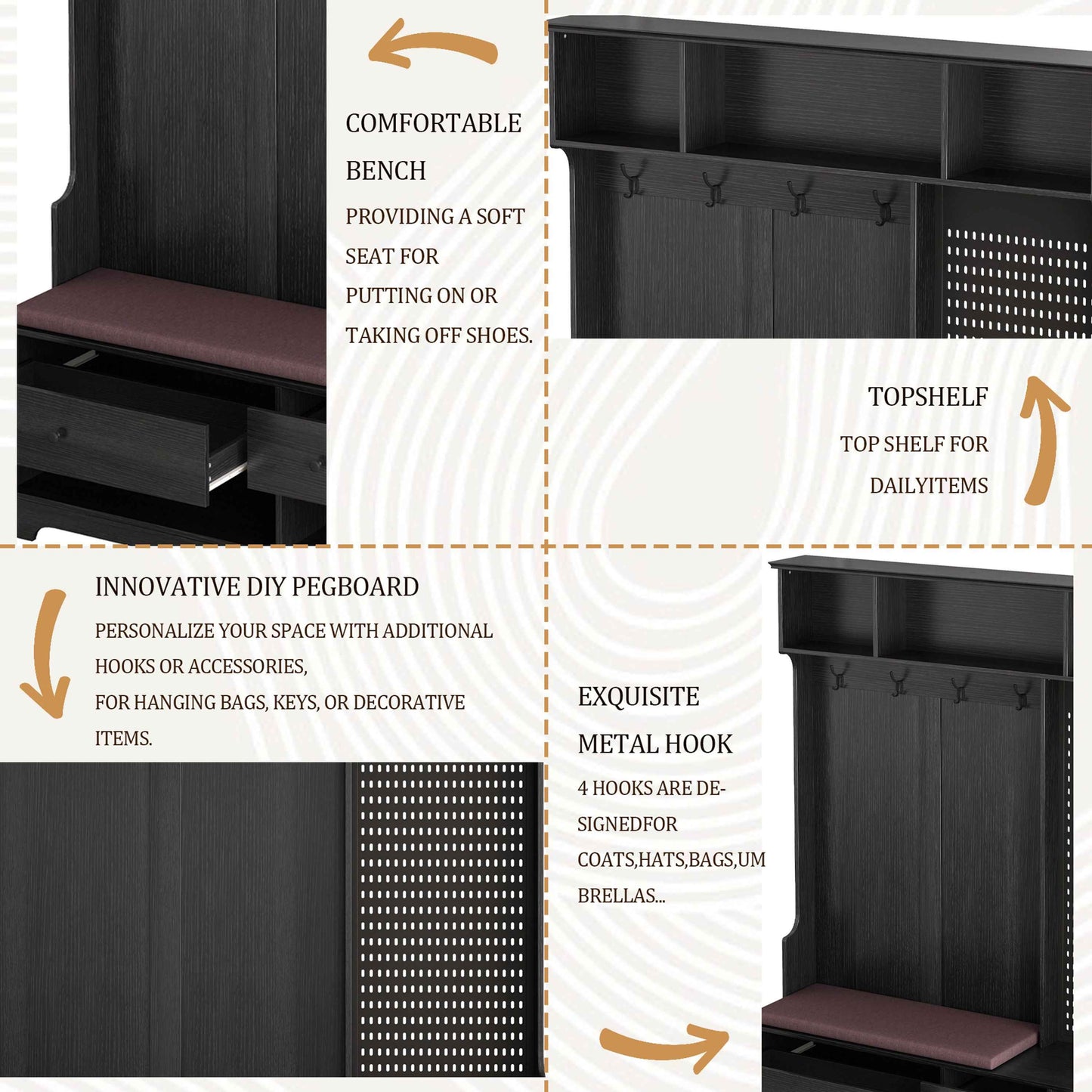 Gerun Hall Tree | Bench & Multiple Storage Spaces | Black