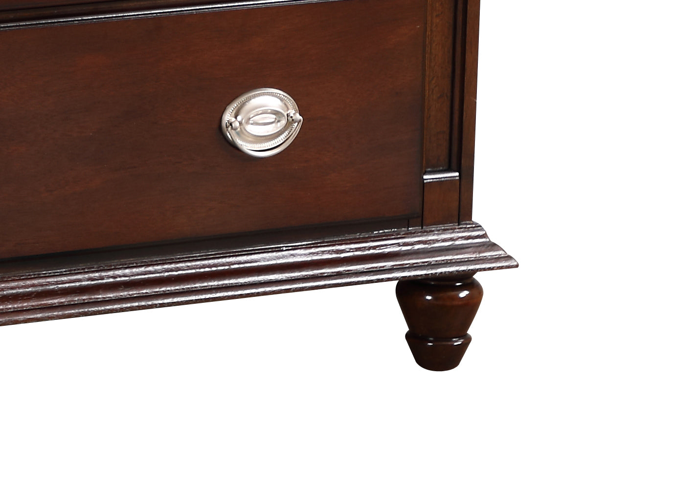 This beautifully designed dresser offers practical storage solutions while enhancing the aesthetic of your space. The rich cappuccino finish provides a warm and inviting look, making it a versatile piece for a variety of decor styles. Constructed from premium wood veneer, this dresser is built to withstand daily use, ensuring that it remains a staple in your home for years to come. The thoughtfully designed spacious drawers feature dovetailed construction for smooth operation and added durability, allowing you to easily store clothing and other essentials without compromise.