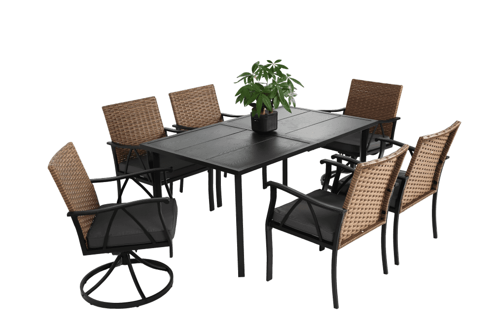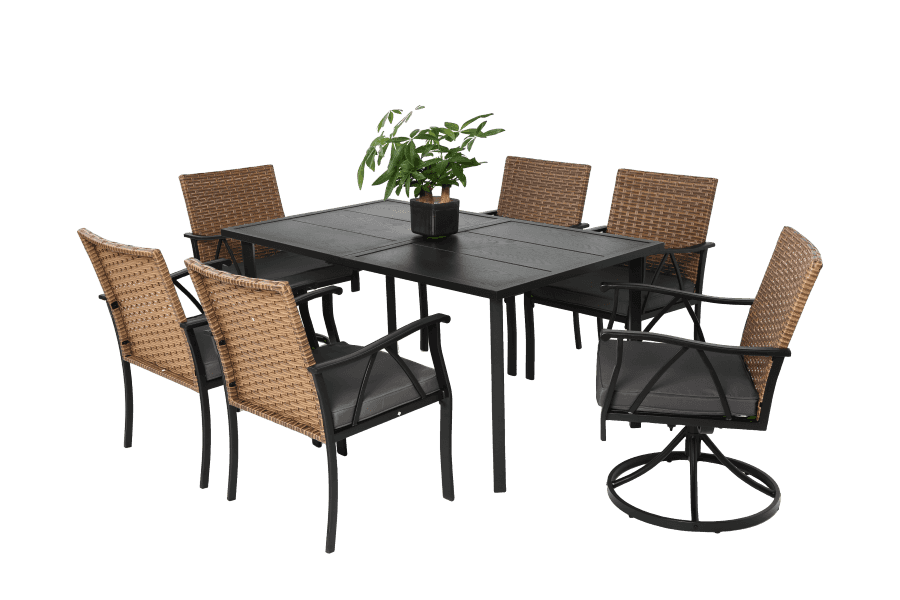 Helder 7-Piece Outdoor Furniture Set | 1 Dining Table - 4 Chairs - 2 Swivel Chairs | Black