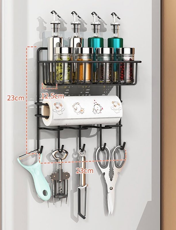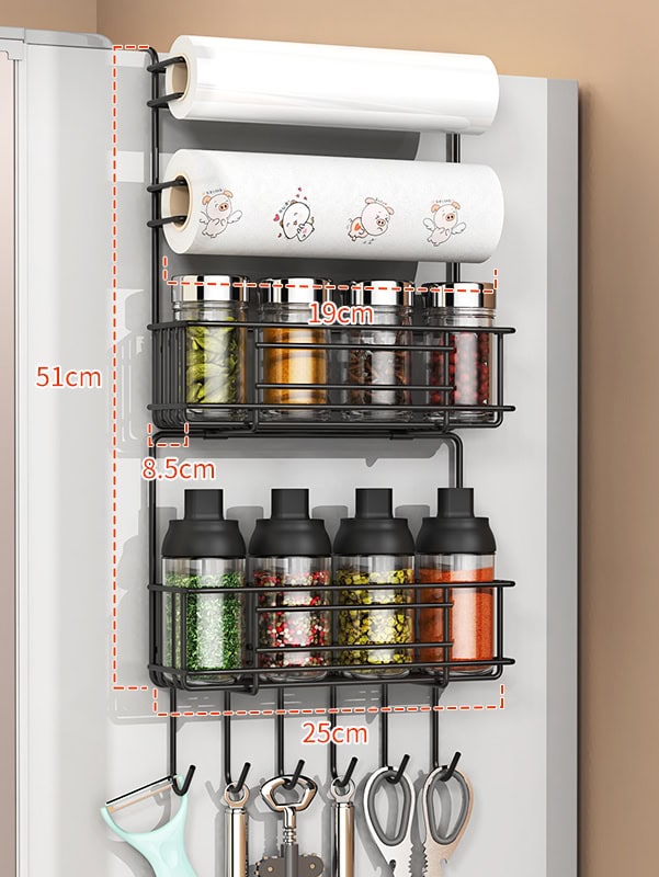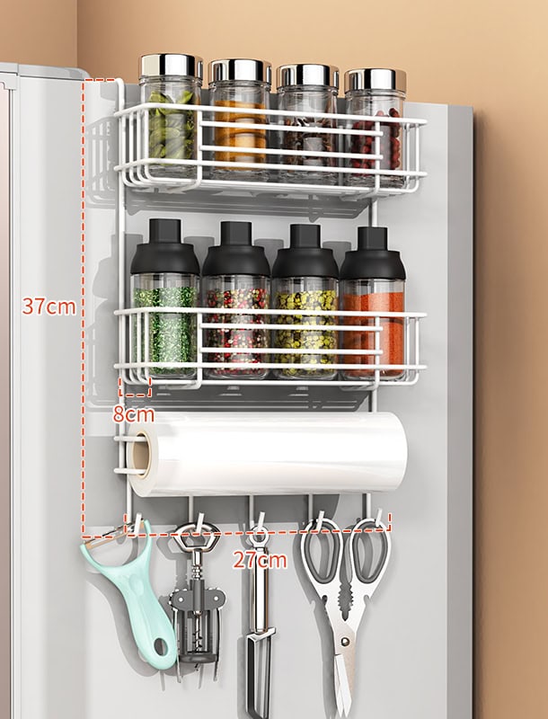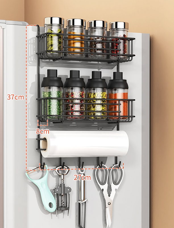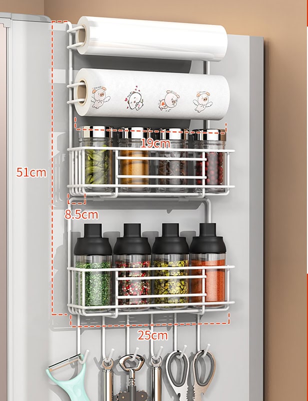 Equip your refrigerator with the side-storage artifact, crafted from durable metal and a hook-type installation. Effortlessly air dry your foods and store your seasonings in one convenient location!
