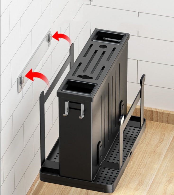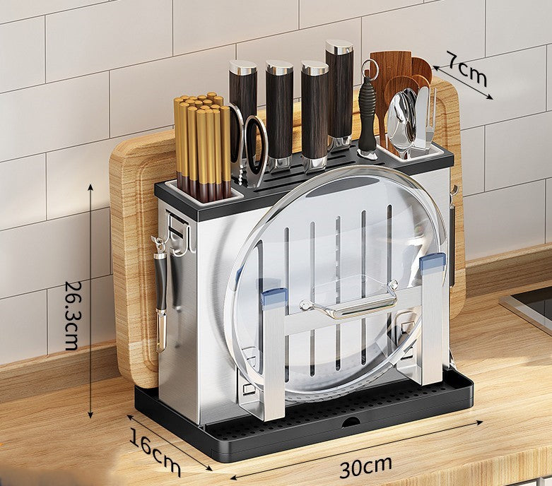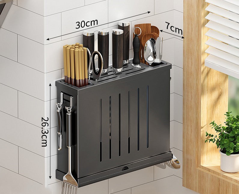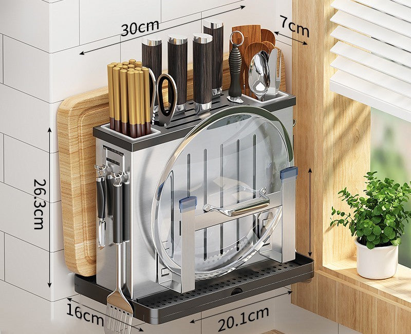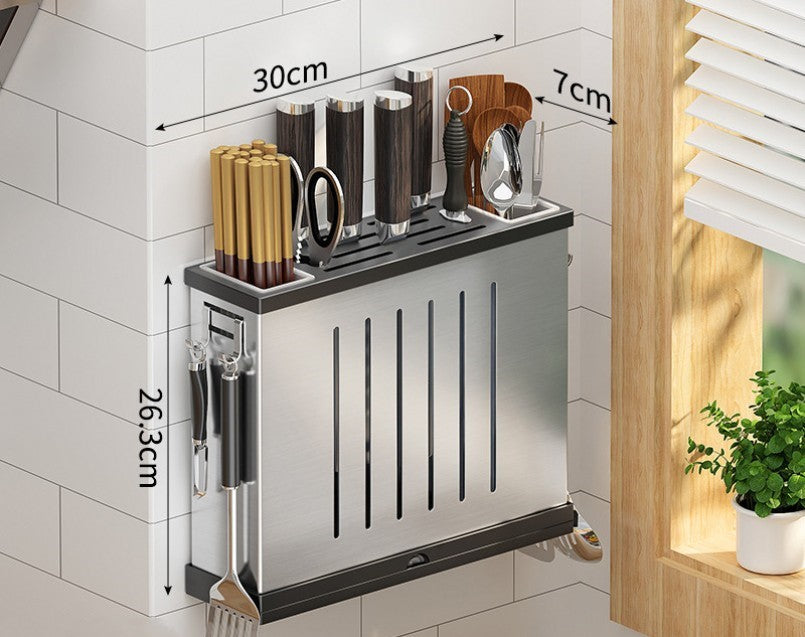 Crafted from 201 stainless steel for maximum durability, this multifunctional knife rack shelf comes in 4 styles to seamlessly match any decor. Experience the wall-mounted/tabletop dual-use convenience of the brushed silver standard, flagship and elegant black models. Make a stylish statement while easily organizing knives and other storage supplies.