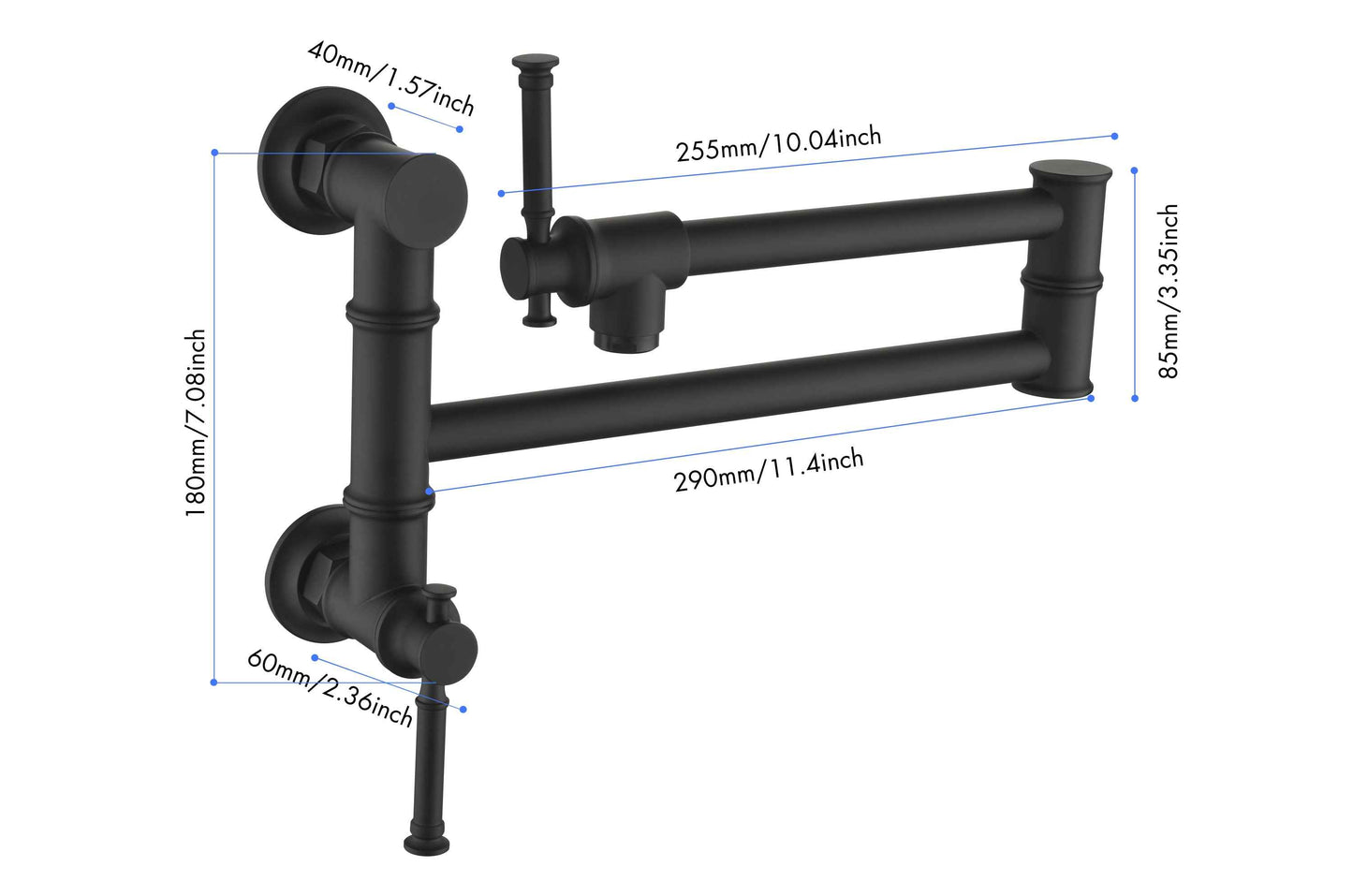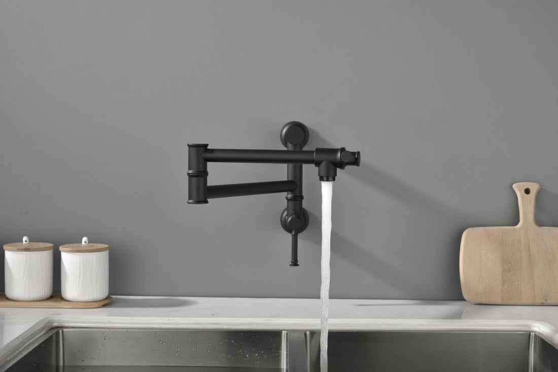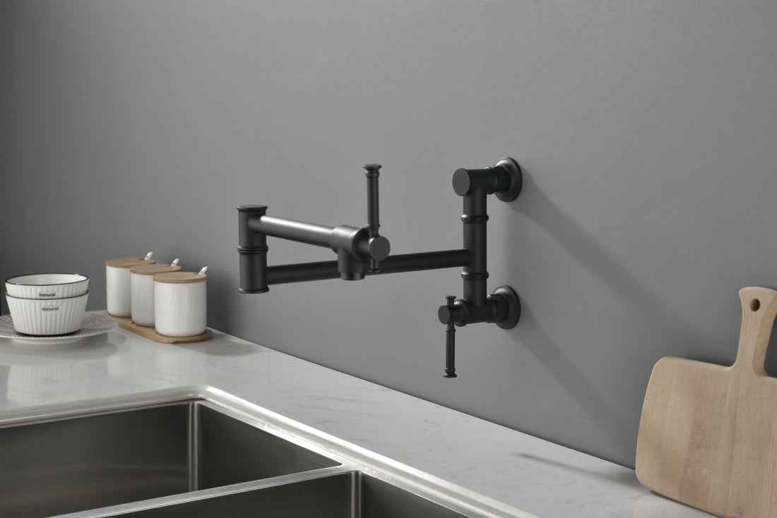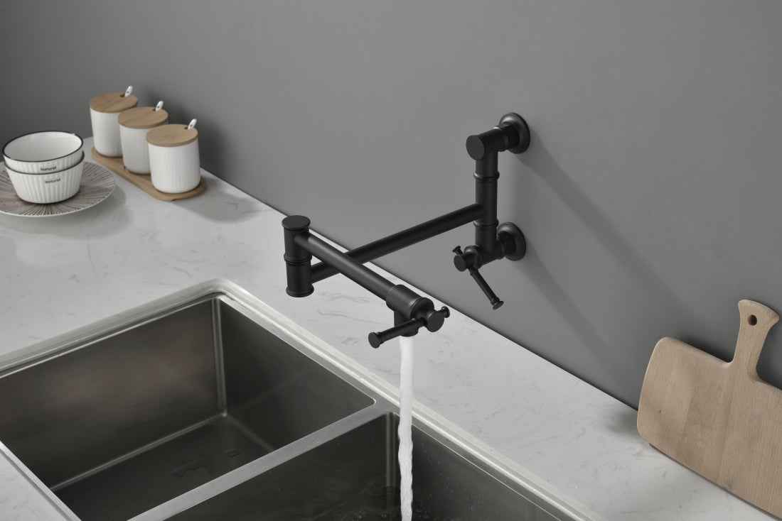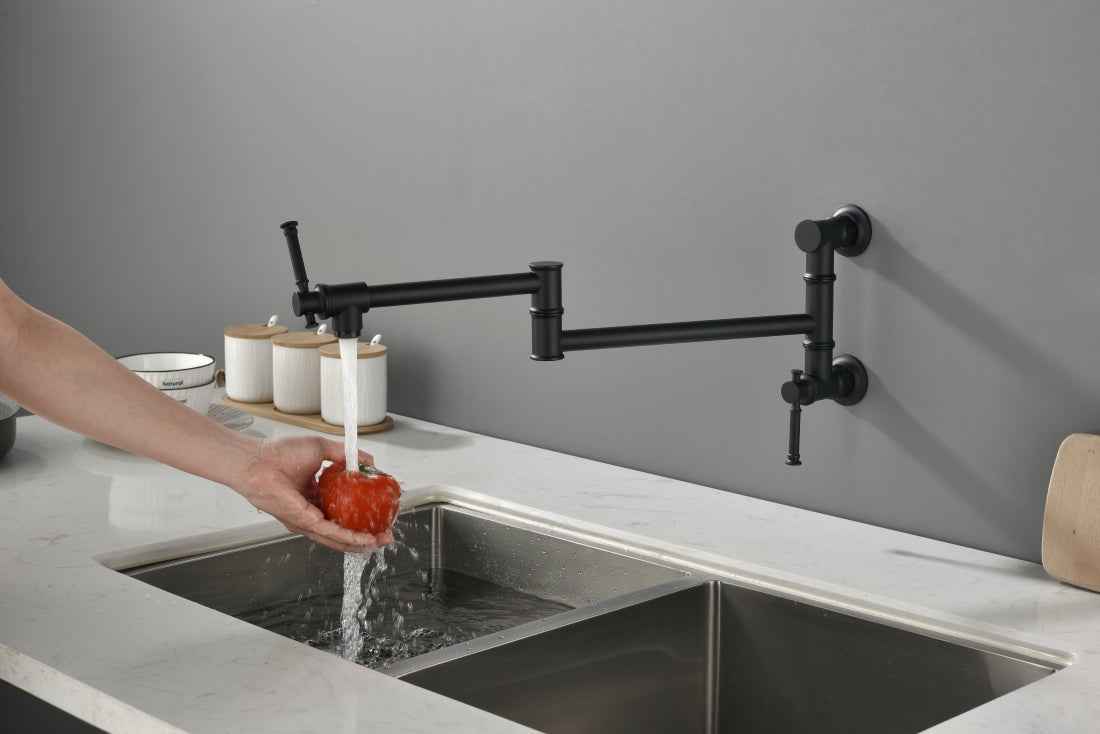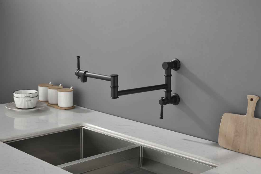 Adetui Pot Filler Kitchen Faucet | Wall Mounted | Two-Attachments | Matte Black