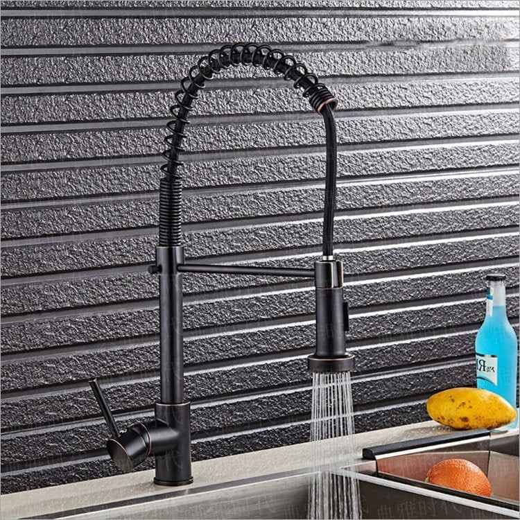 Upgrade your kitchen with this sleek and stylish faucet, made of high-quality copper. It features a unique double-type architecture and a smooth spiral opening mechanism. Choose from two stunning colors to match your kitchen's decor.