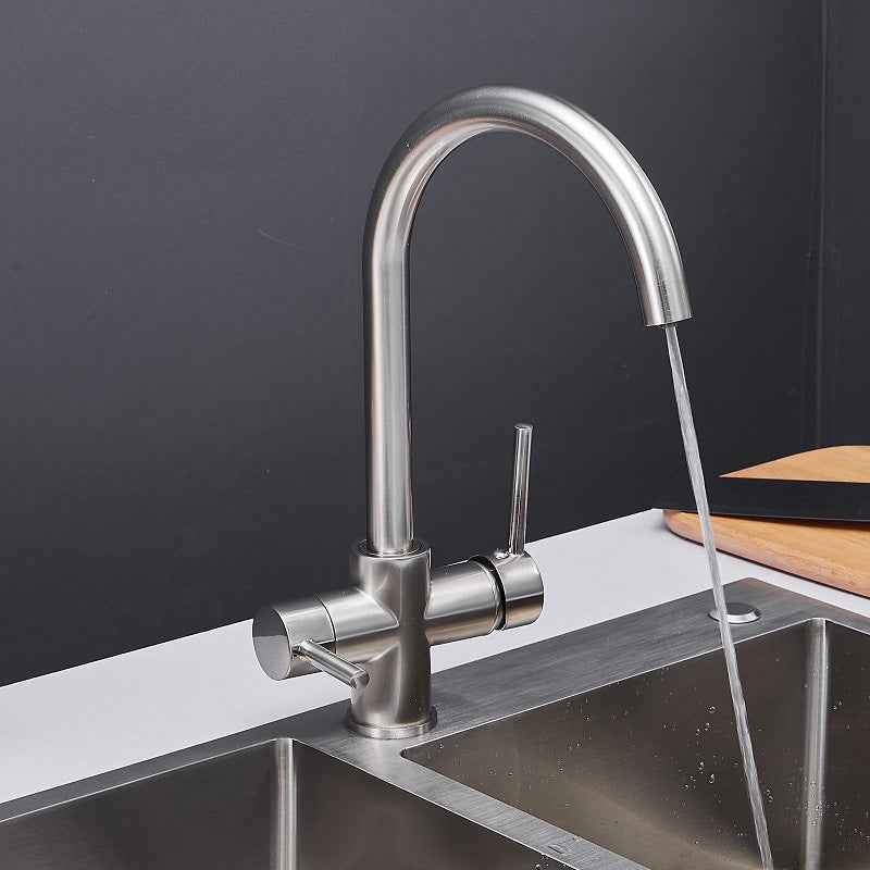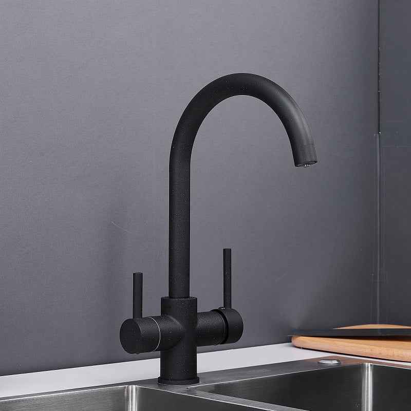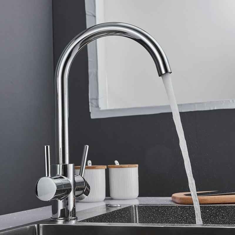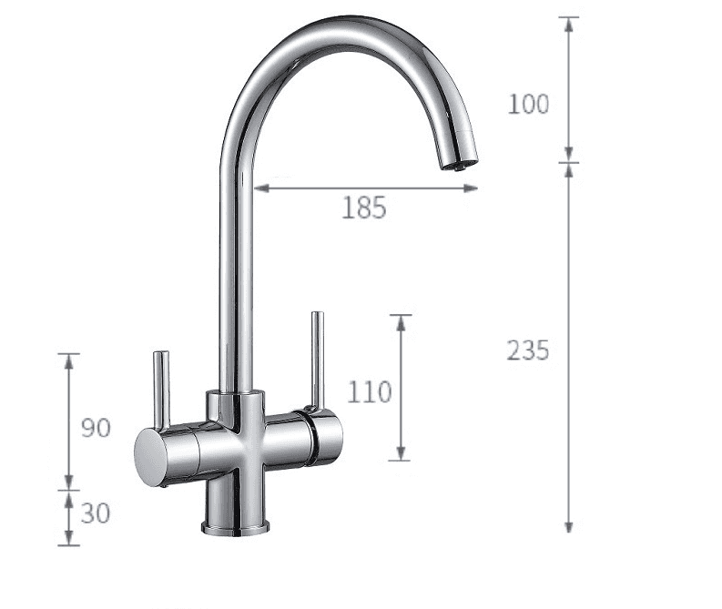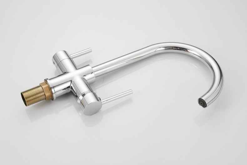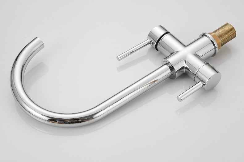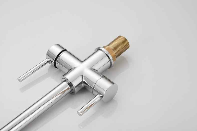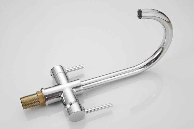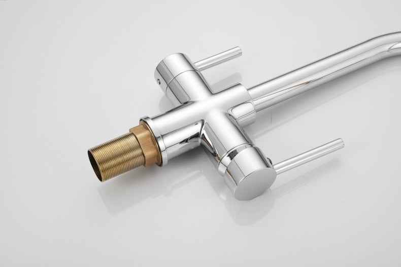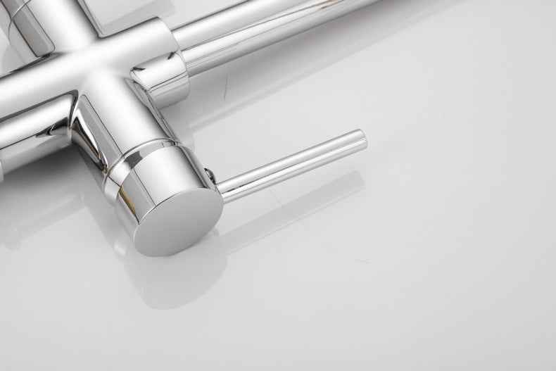Constructed from the finest copper, this faucet boasts an elegantly designed triple structure, coming in five luxurious finishes. Its valve-core is crafted from a ceramic disc and has two handy handles.
