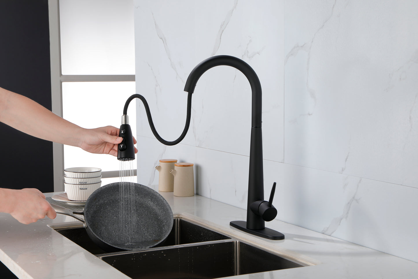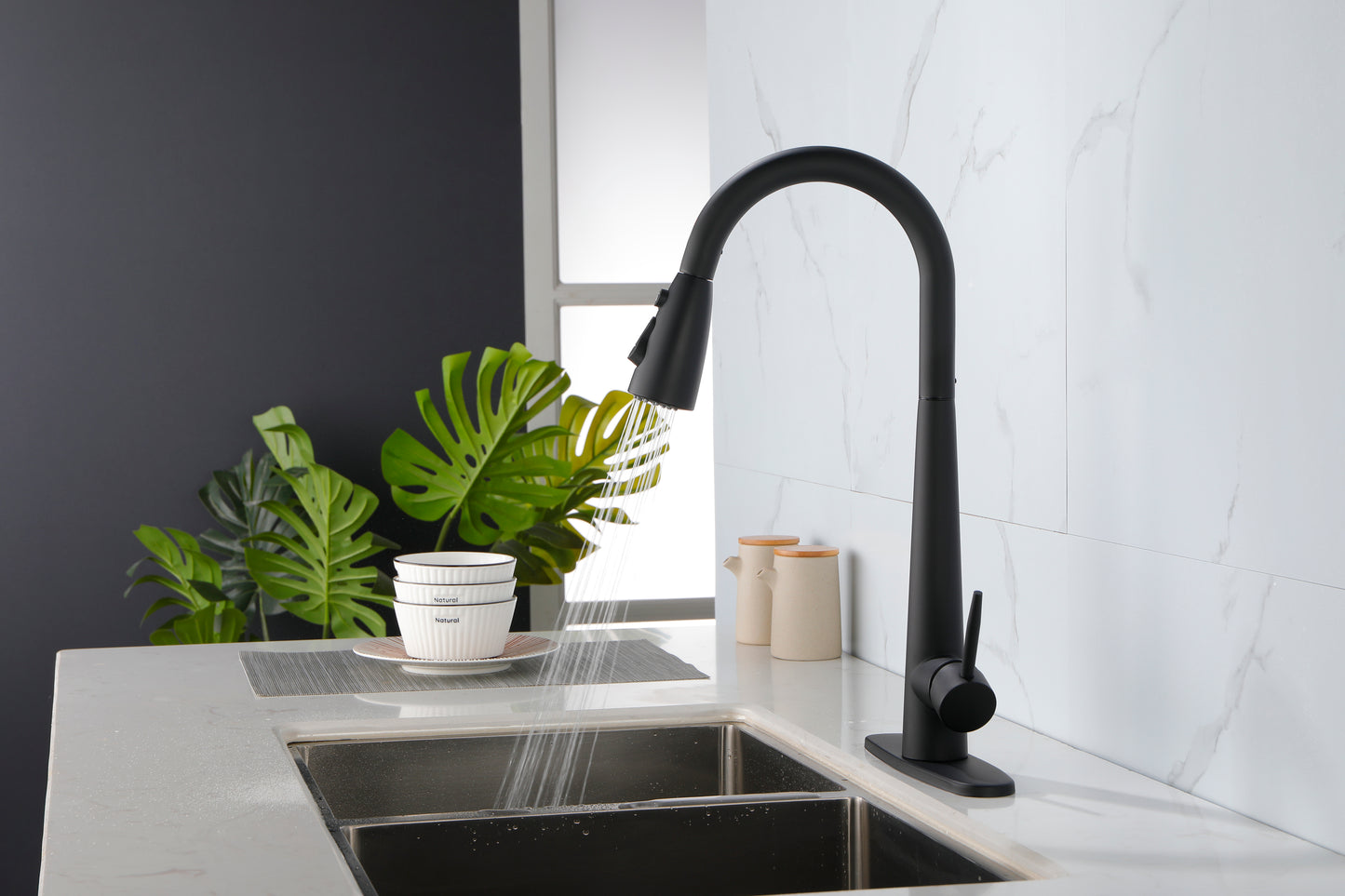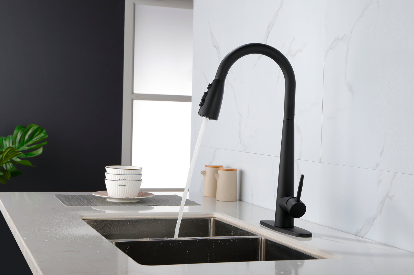Easy to Install---Pull down hose and water Line hose altogether preinstalled in kitchen faucet to save much time under the sink,no require plumber,finish DIY installation less than 30 minutes.