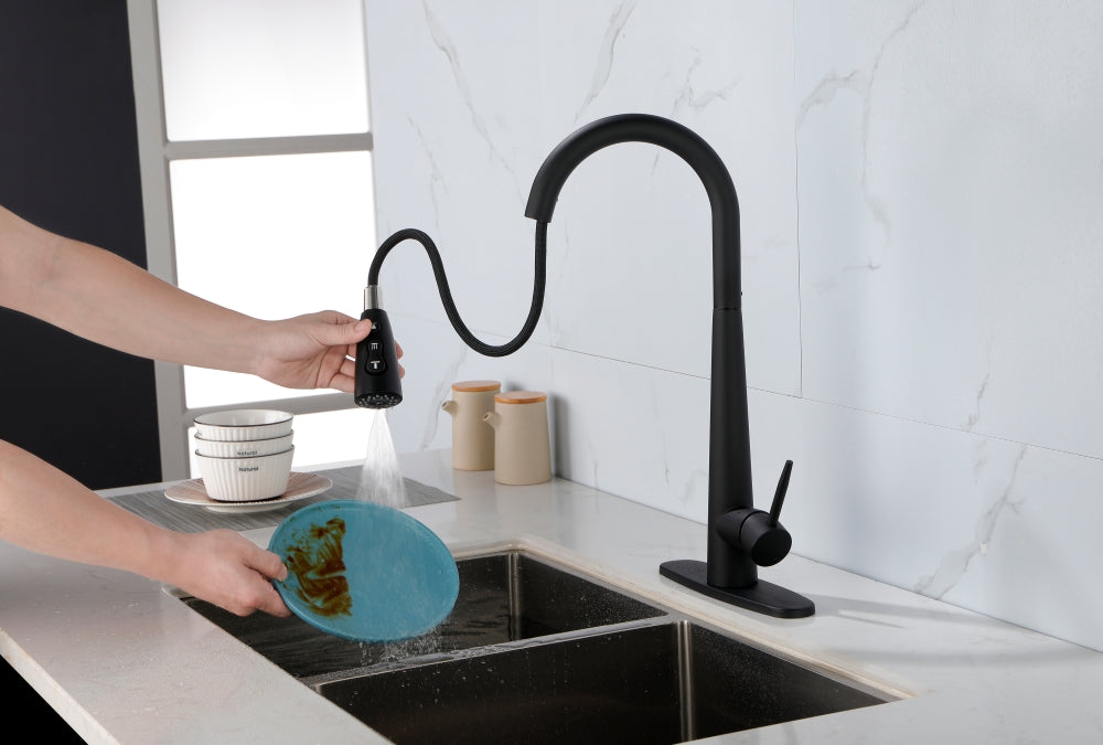 Easy to Operate---Single handle control water temperature and flow volume easily,high arc 360 degree swivel spout supply full range washing access, sprayer head always retract back to spout after each use.