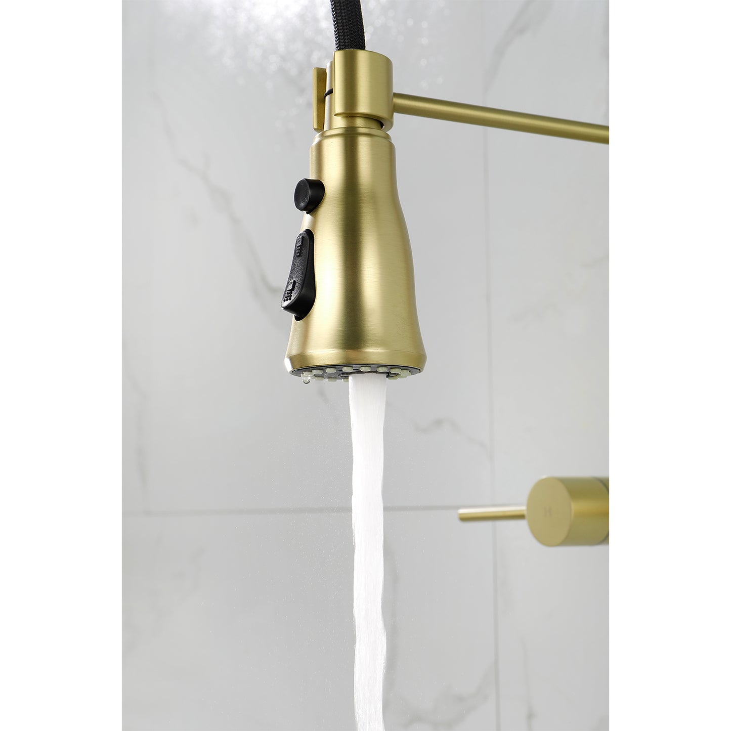 The kitchen faucet with pull-down sprayer has a simple and stylish design that easily matches most sinks. Three water outlet functions (stream, spray and blade) to meet your various water use situations. The high-arc nozzle rotates 360 degrees to provide all-round cleaning. For daily cleaning, just clean the faucet with a rag and it will look like new.