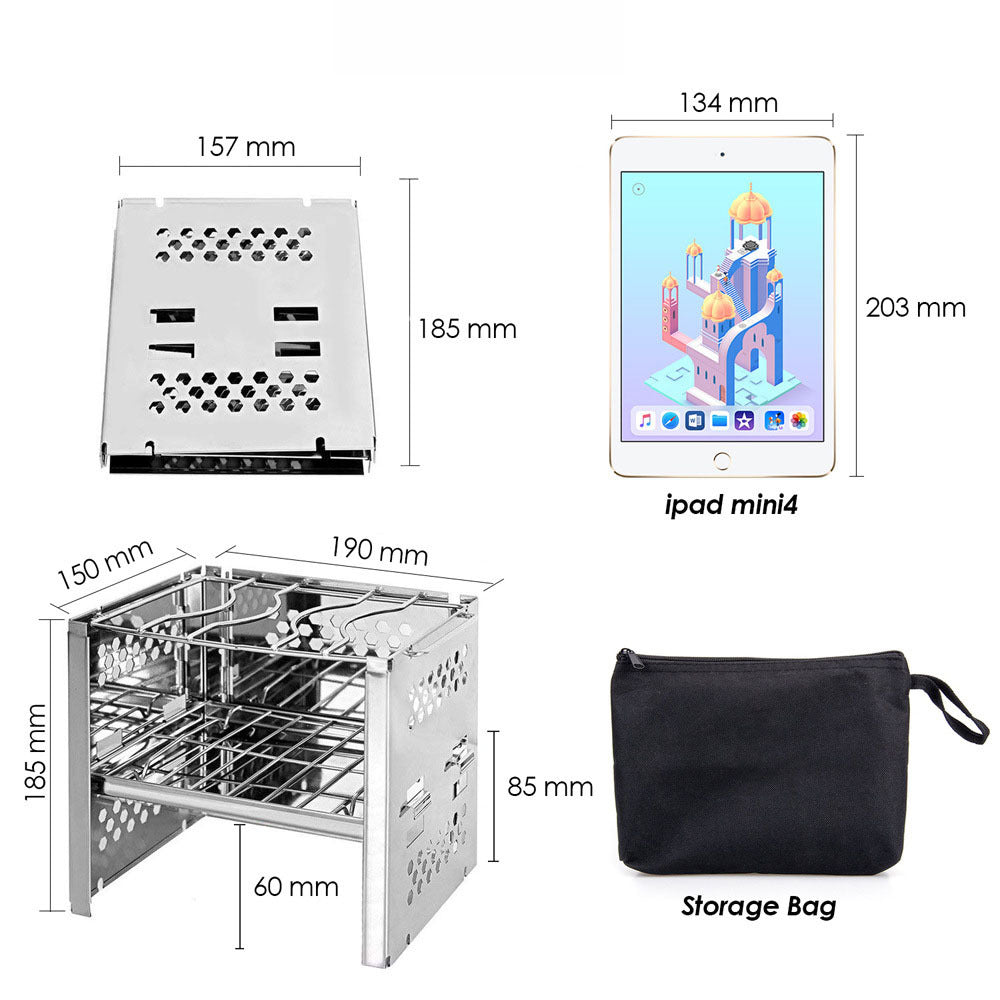 Bring your culinary dreams to life with our Mini BBQ Grill! Our stainless steel construction and multi-fuel stove make your grilling experience effortless and delicious. Unfold the 19x15x18.5cm split-style structure, ignite the multiple fuels, and tantalize your taste buds with a sumptuous silver-hued feast!