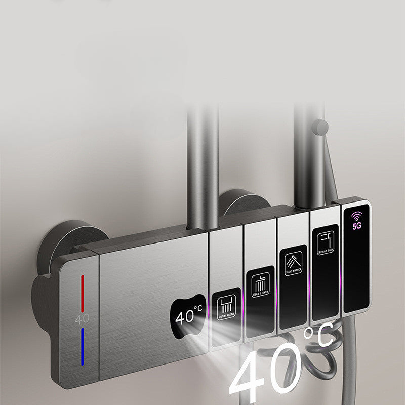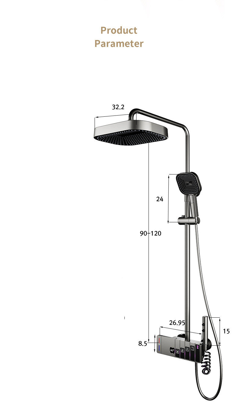 Feel the ultimate luxury with our thermostatic shower column. Made of high-quality copper and aluminum, it offers advanced temperature control and a convenient digital display. Keep the perfect temperature and enjoy the soothing rain protection.