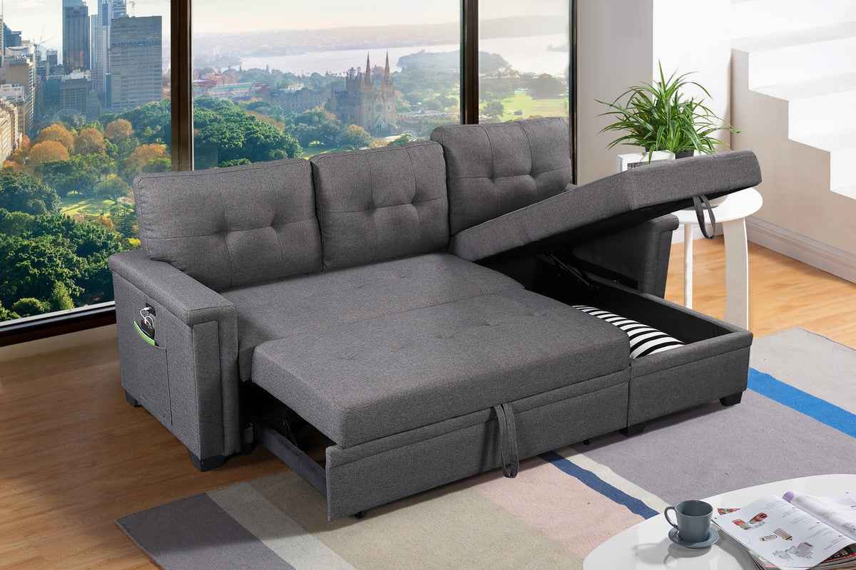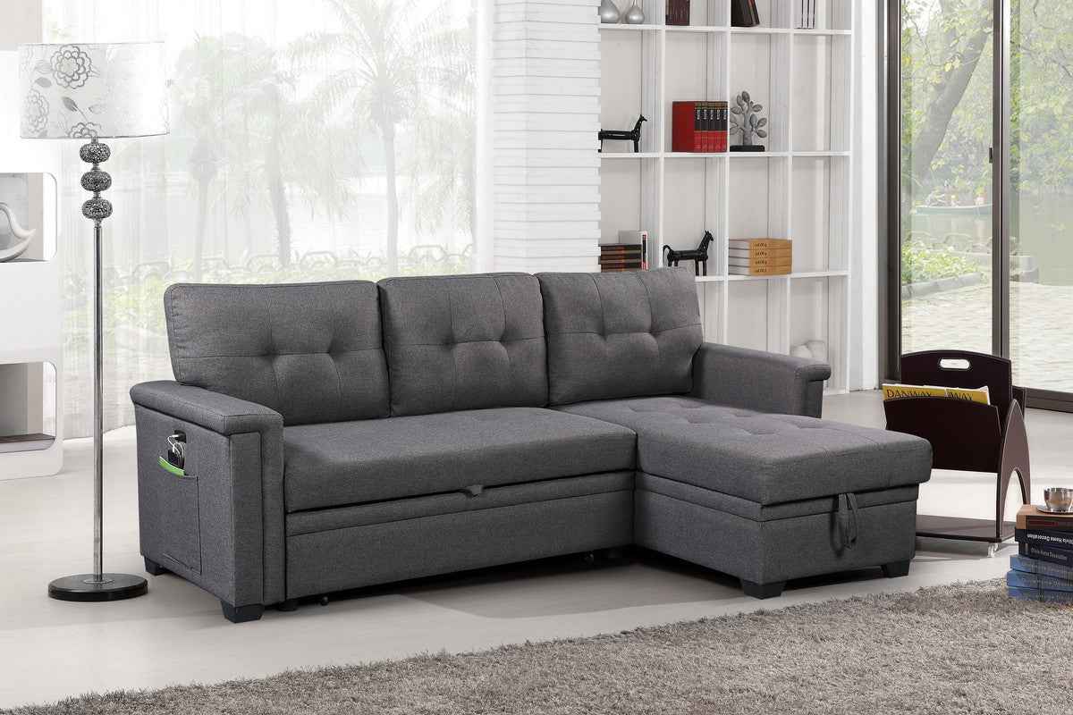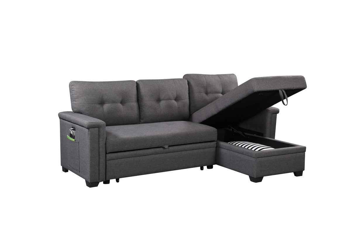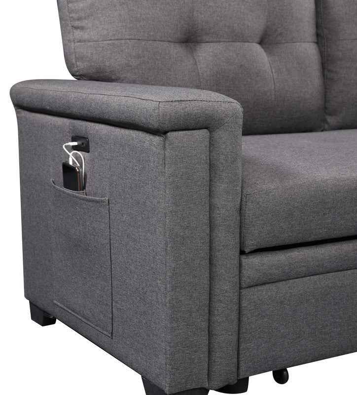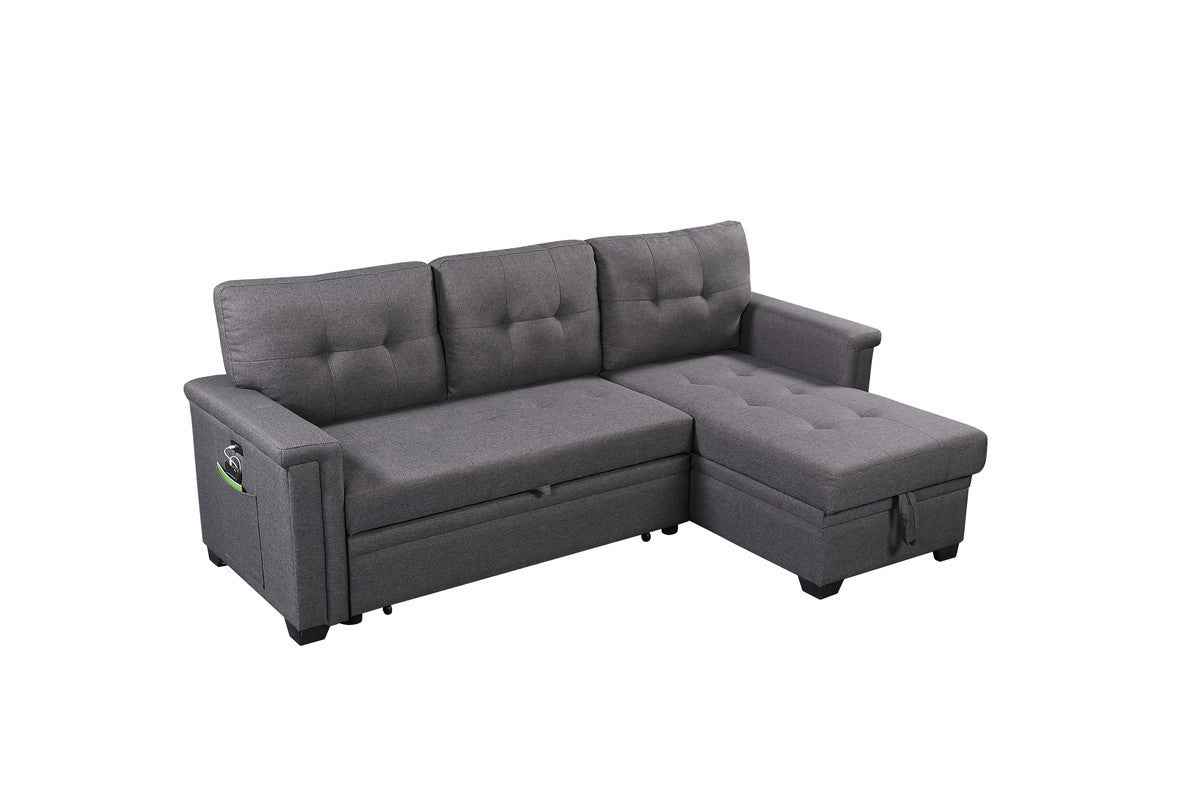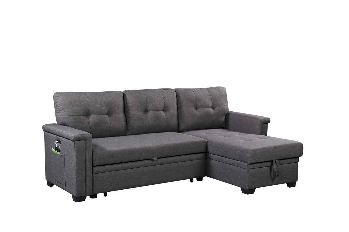 Ashlyn 84" Reversible Sectional Sofa | USB Charging Port | Dark Gray