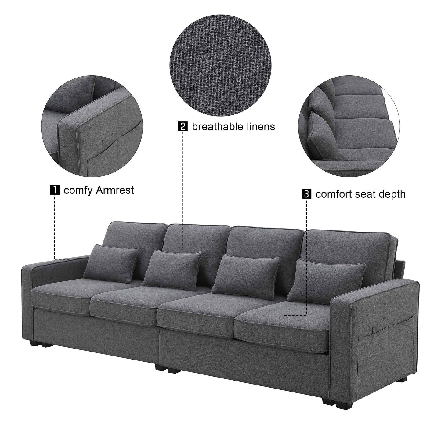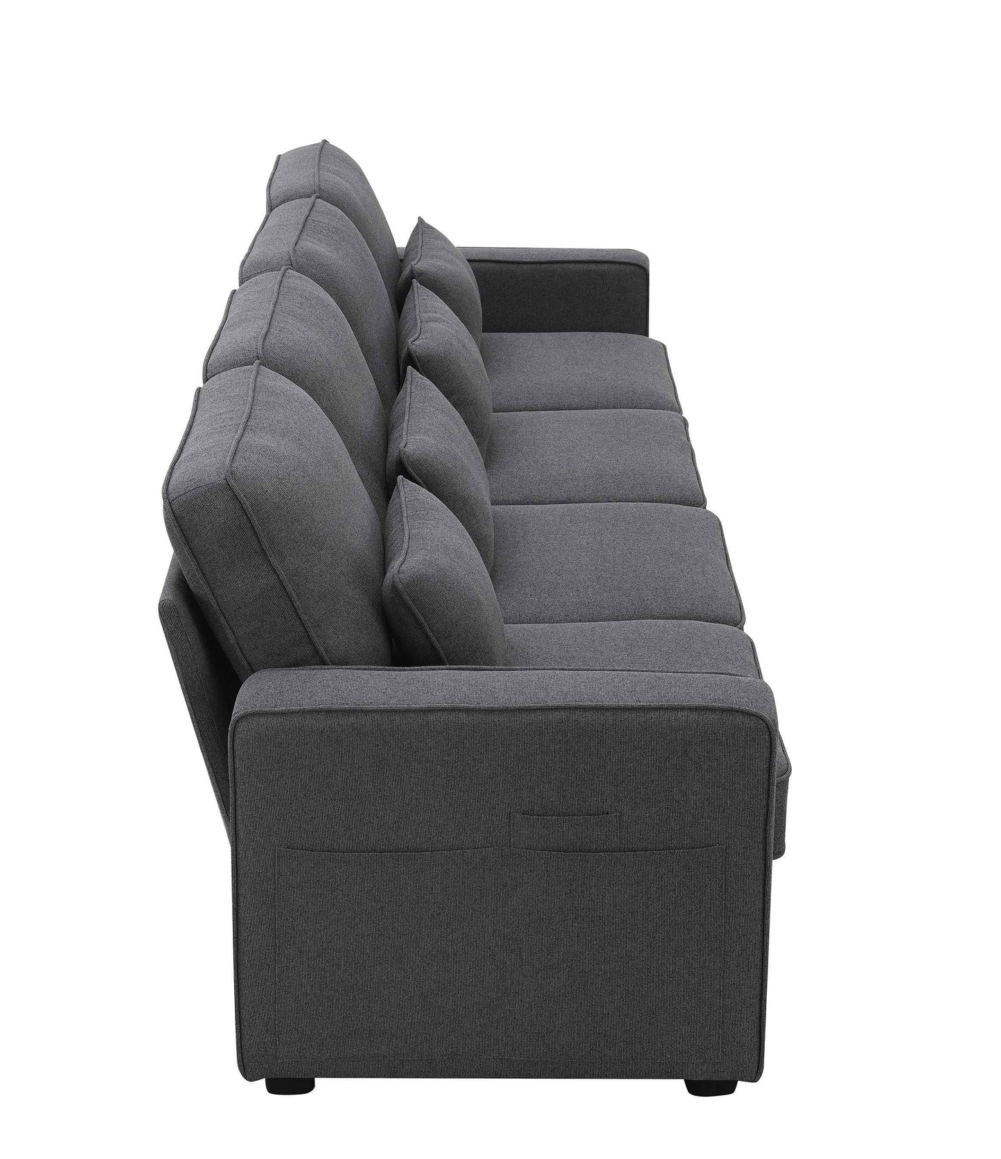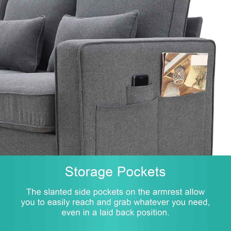 - More Storage Space: To make the environment look neater,the sofa has some storage pockets on the side to storage magazines,phones,remote controls or others.