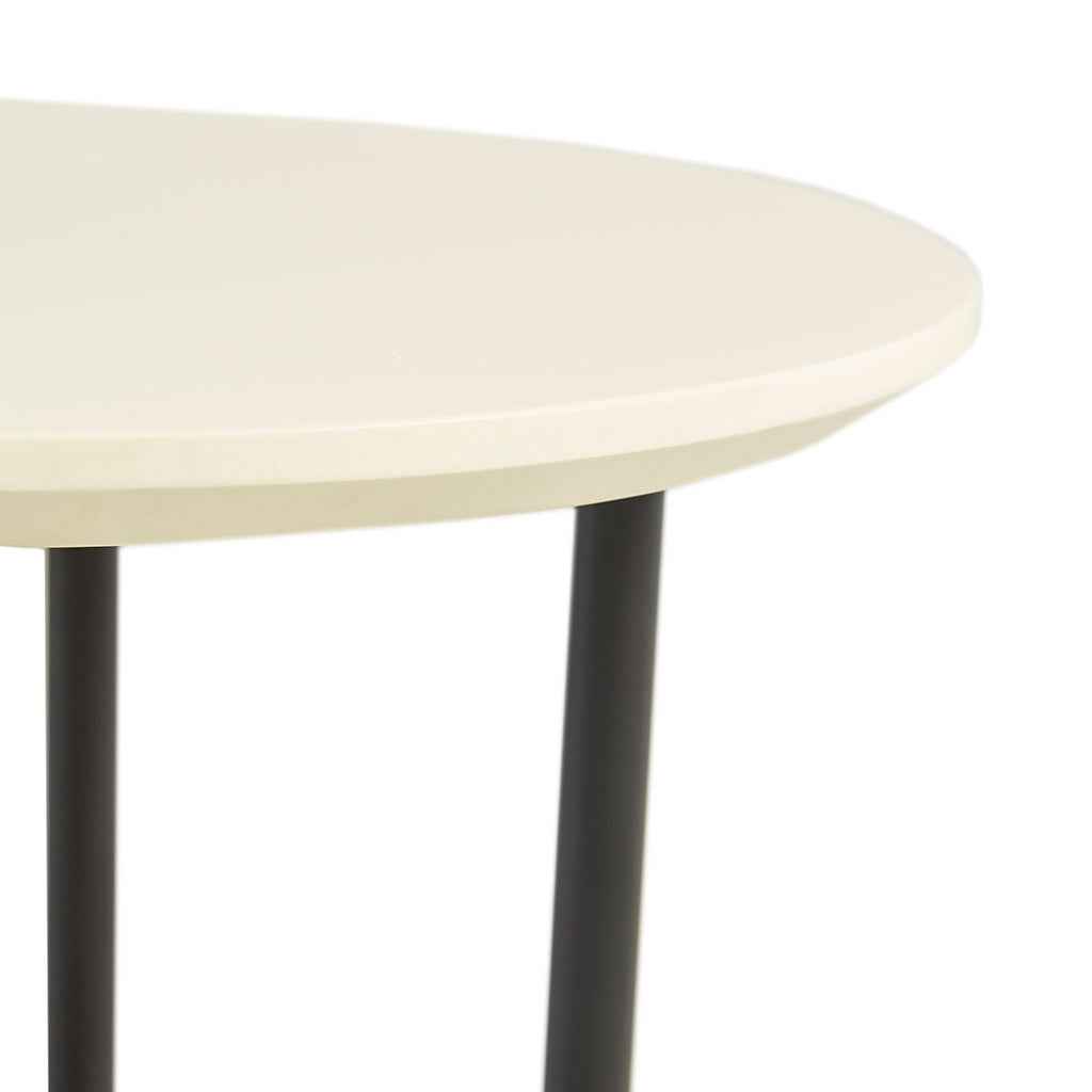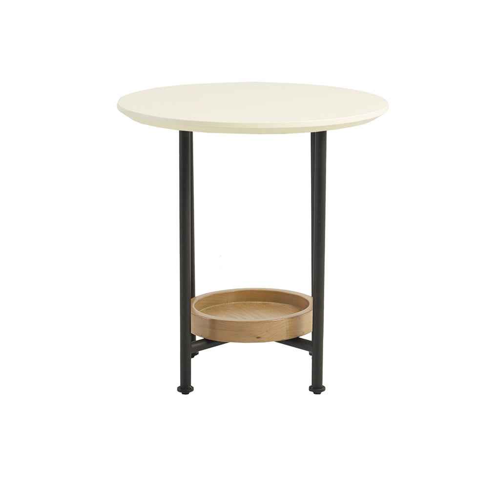 Modernize your living room decor with the Madison Park Beaumont End Table. Flaunting an eye-catching design, this oval end table features a white table top with black metal legs that create a bold contemporary look. A lower natural shelf provides space to display and store your magazines and other essentials. Assembly is required and tools are included.