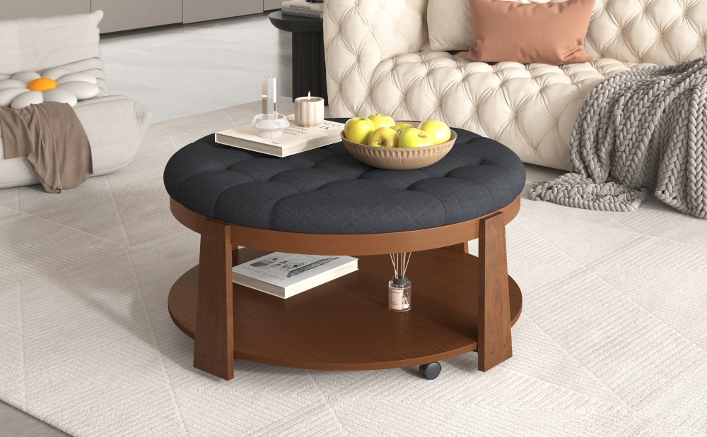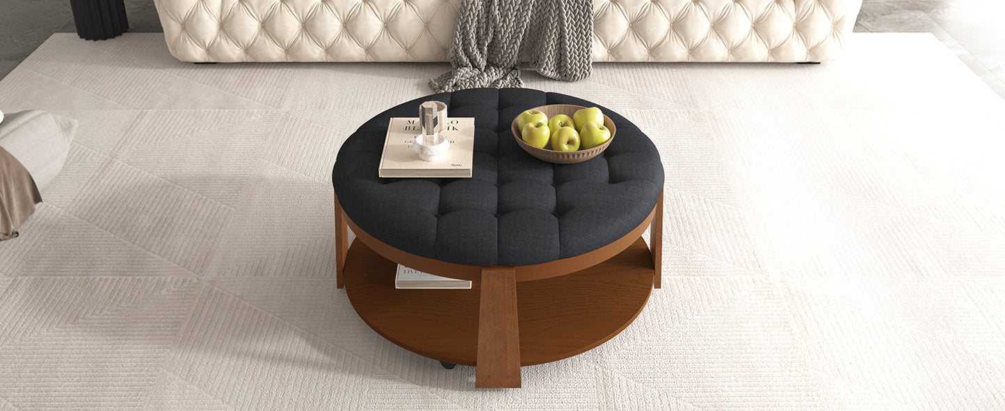Jectiona Large Round Ottoman-Coffee Table | Black & Walnut