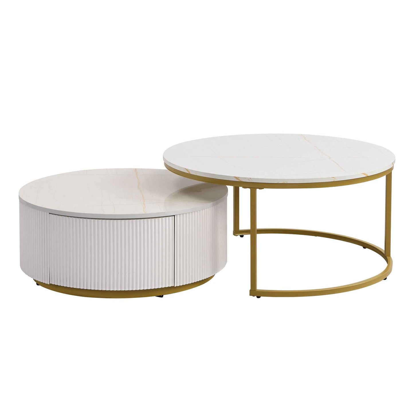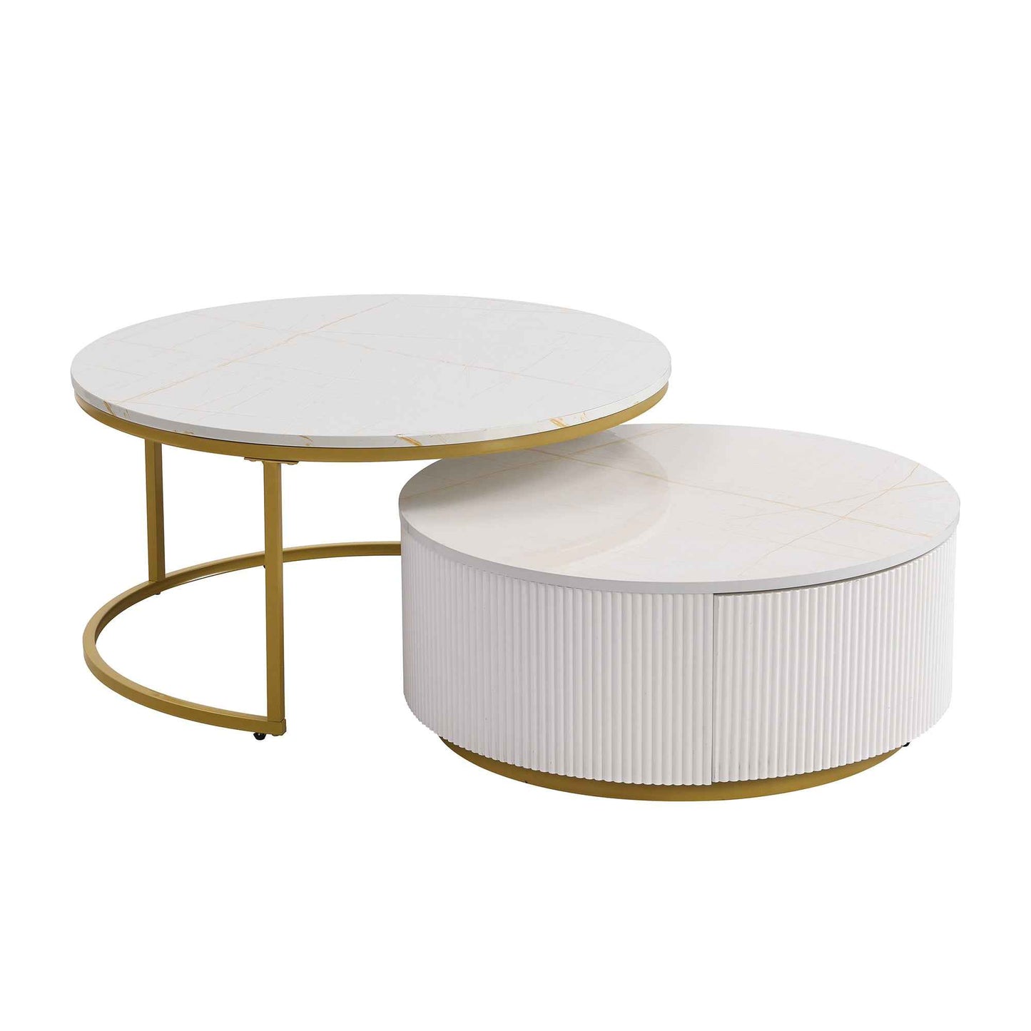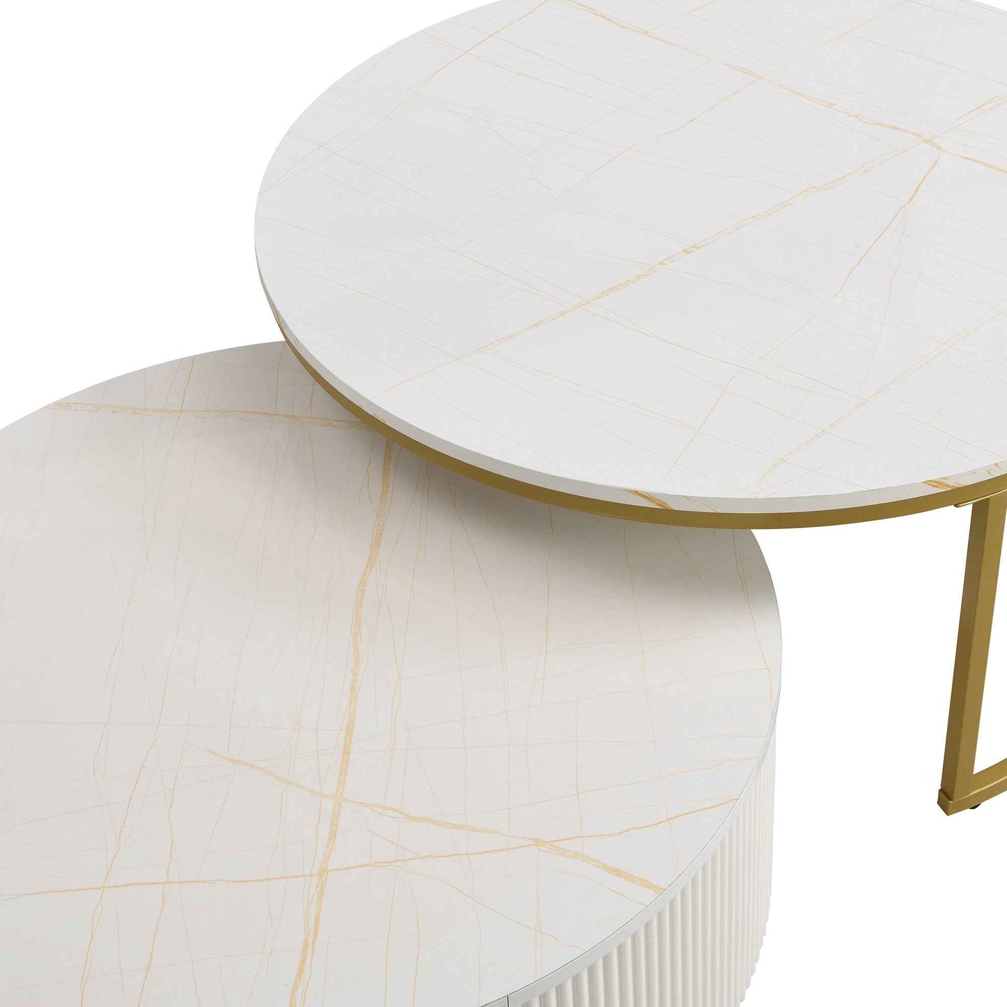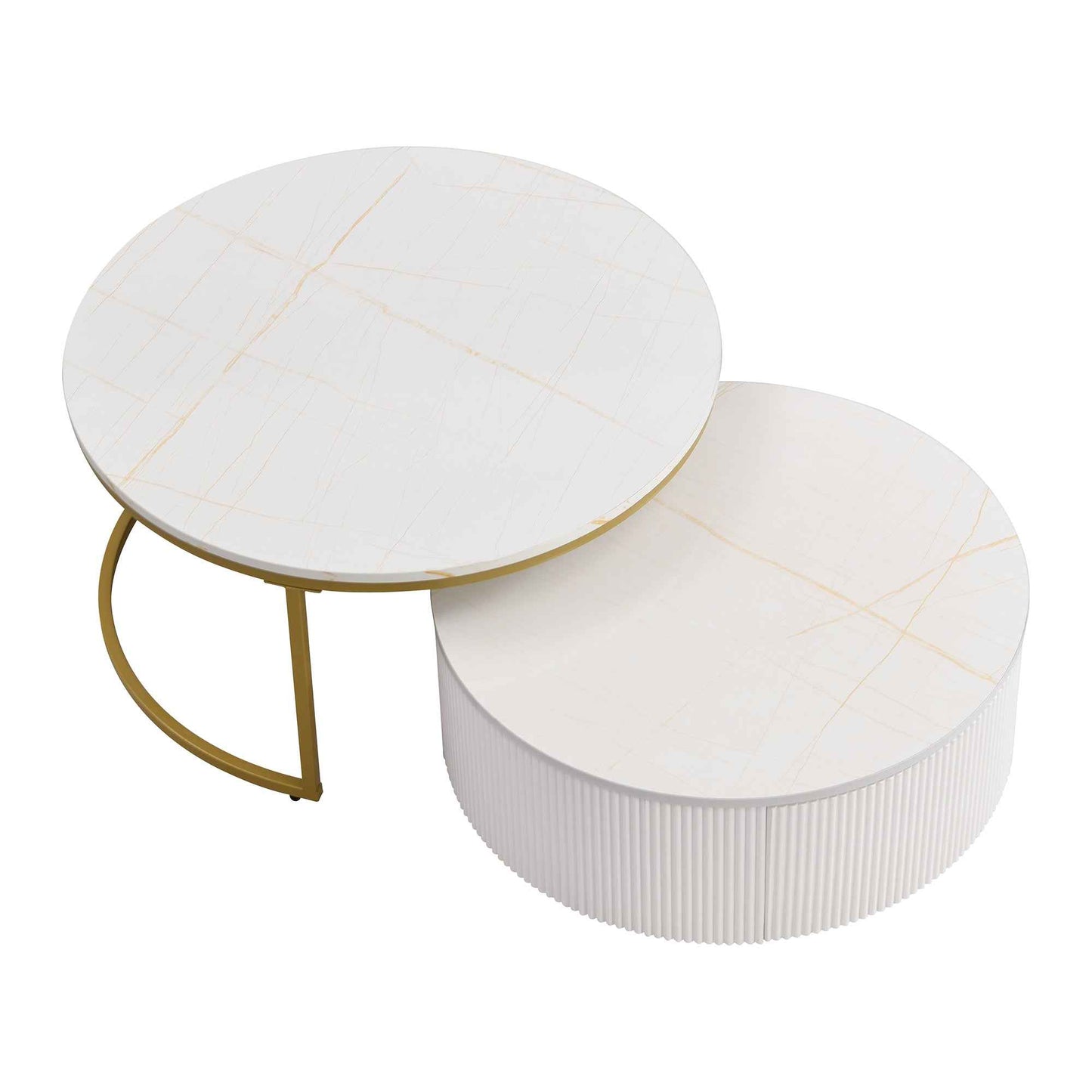 Celevus Modern Round Nesting Coffee Table | White & Gold
