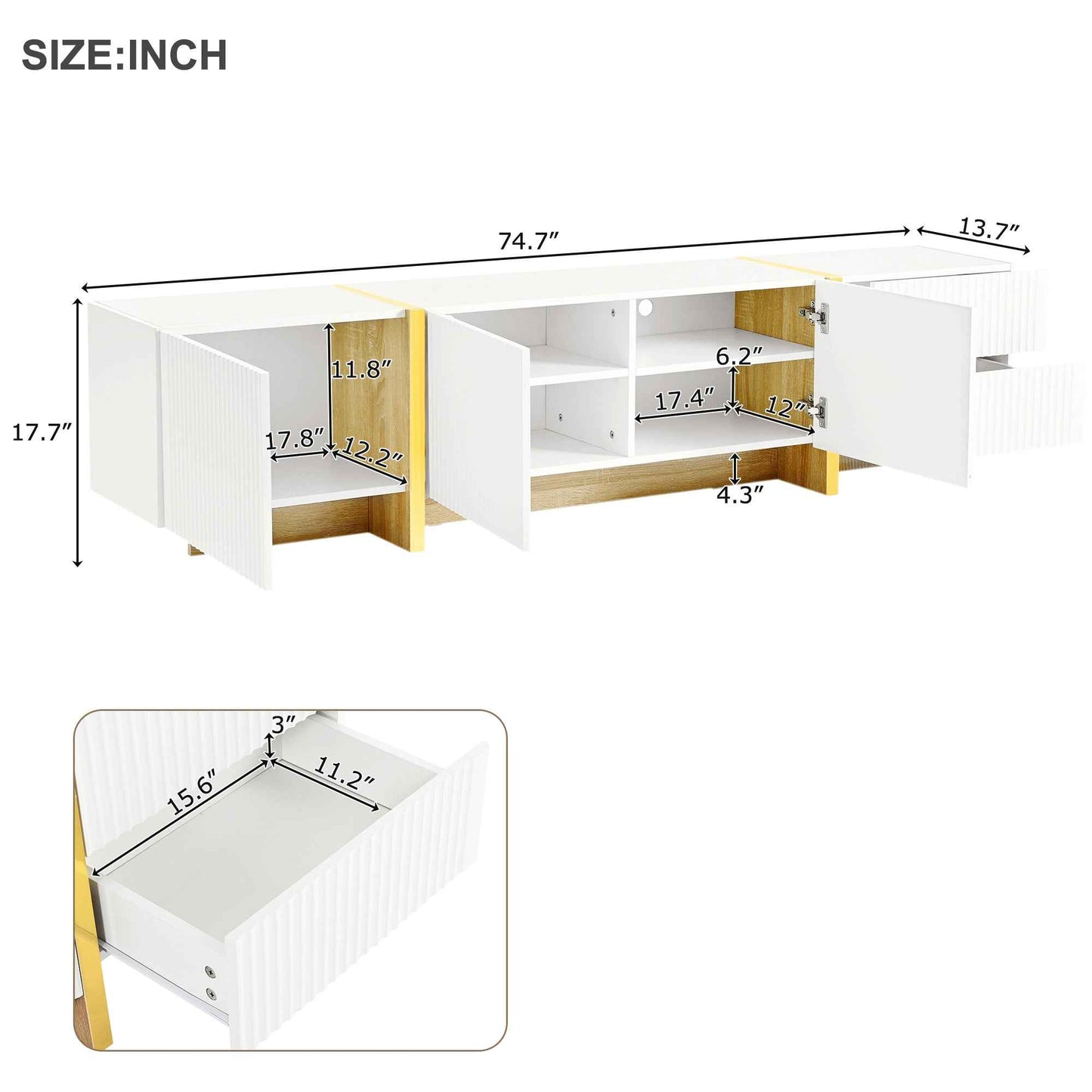 Detailed Measurement | Overall: 74.7”W x 13.7”D x 17.7”H / Drawer: 15.6”W x 11.2”D x 3”H |