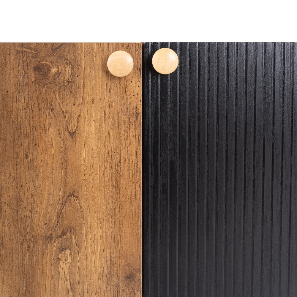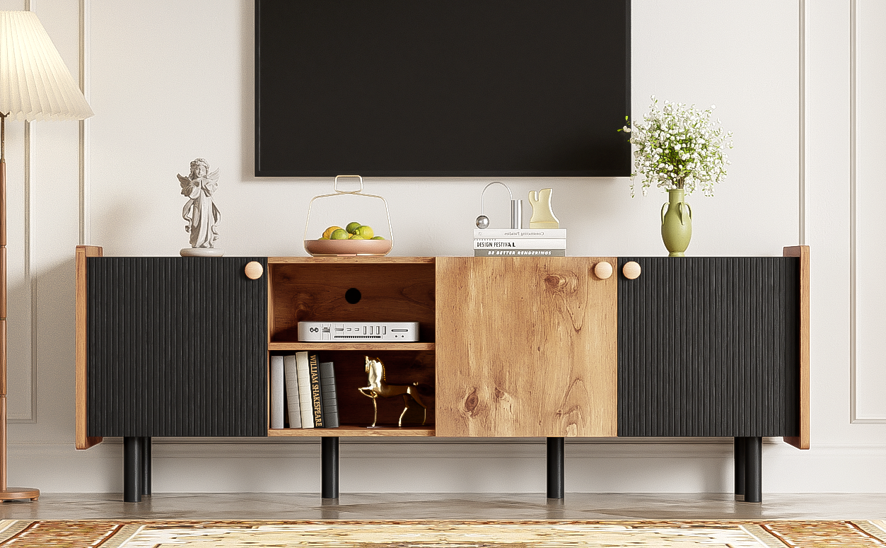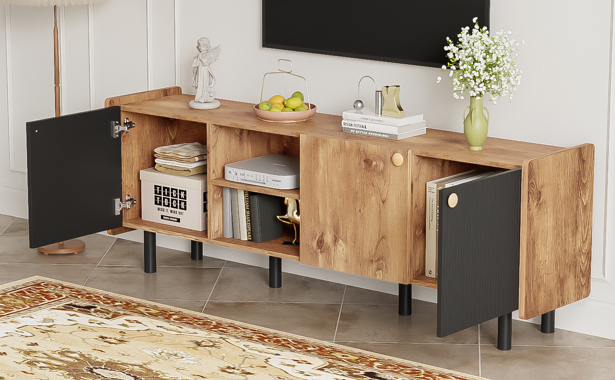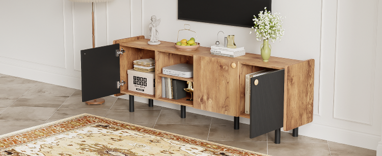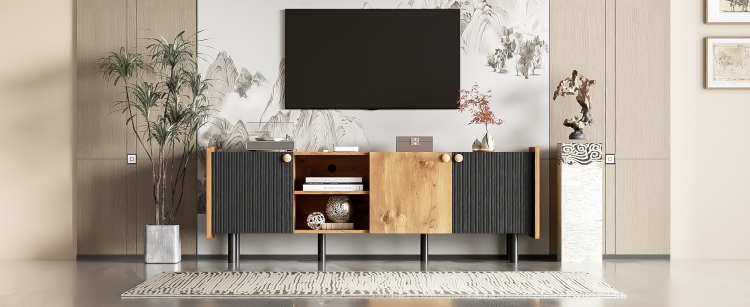 Neesim Mid-Century Media Console Table | Brown Top & Black