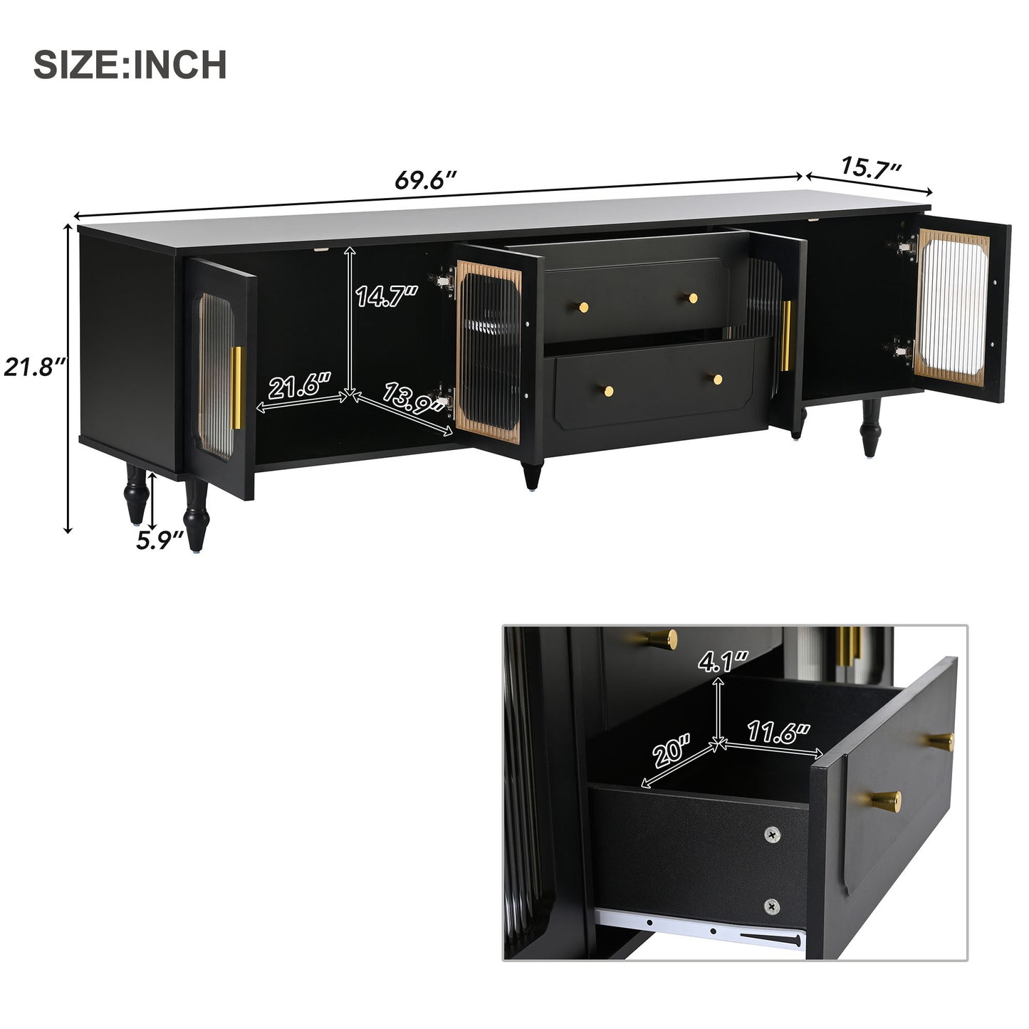 Detailed Measurement | Overall: 69.6”W x 15.7”D x 21.8”H / Cabinet: 21.6”W x 13.9”D x 14.7”H / Drawer: 20”W x 11.6”D x 4.1”H |